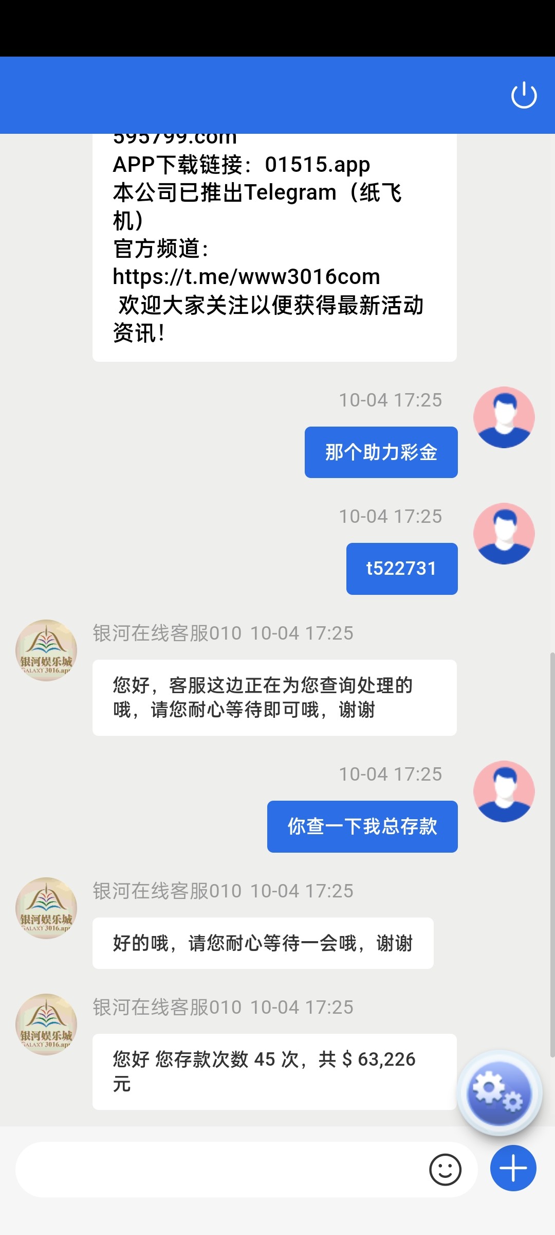 银河不给我。20号有提款