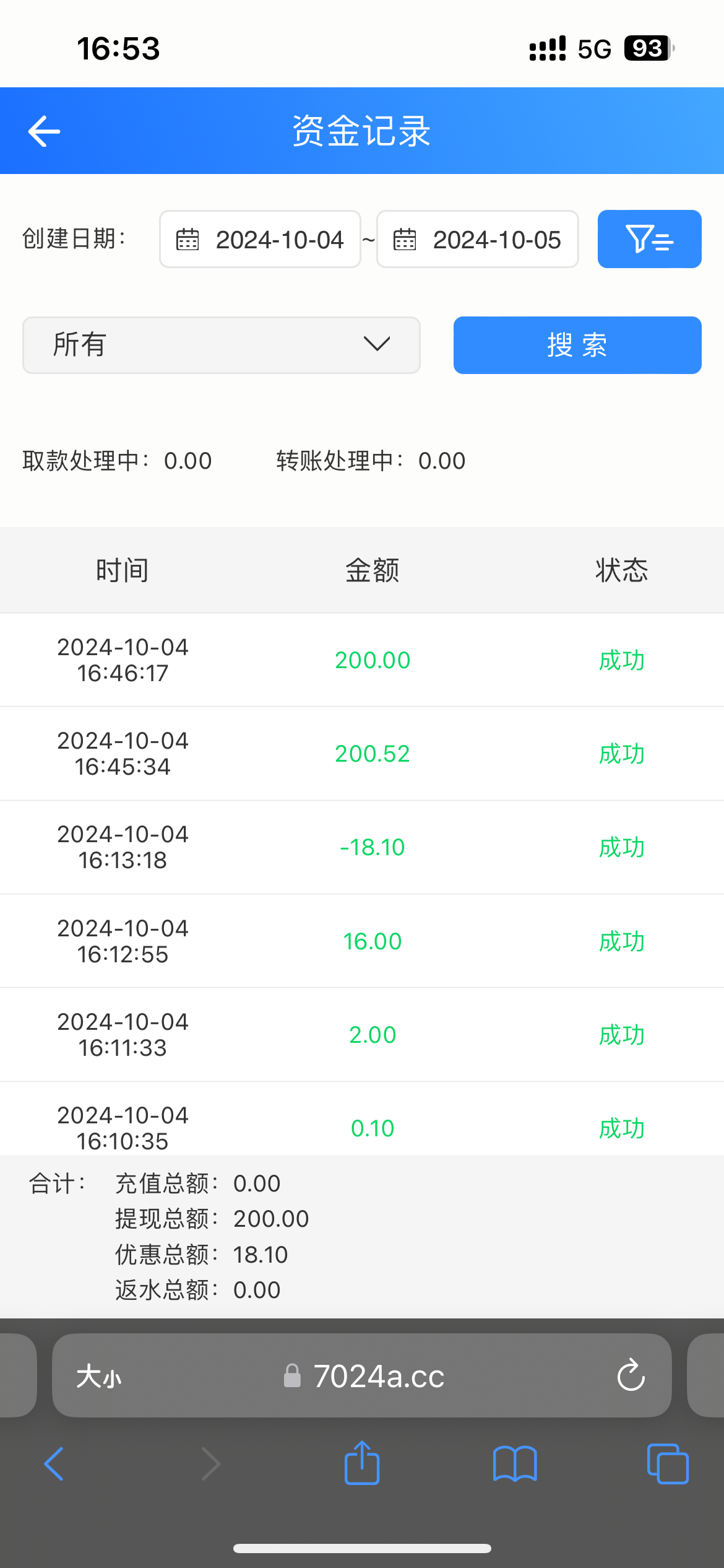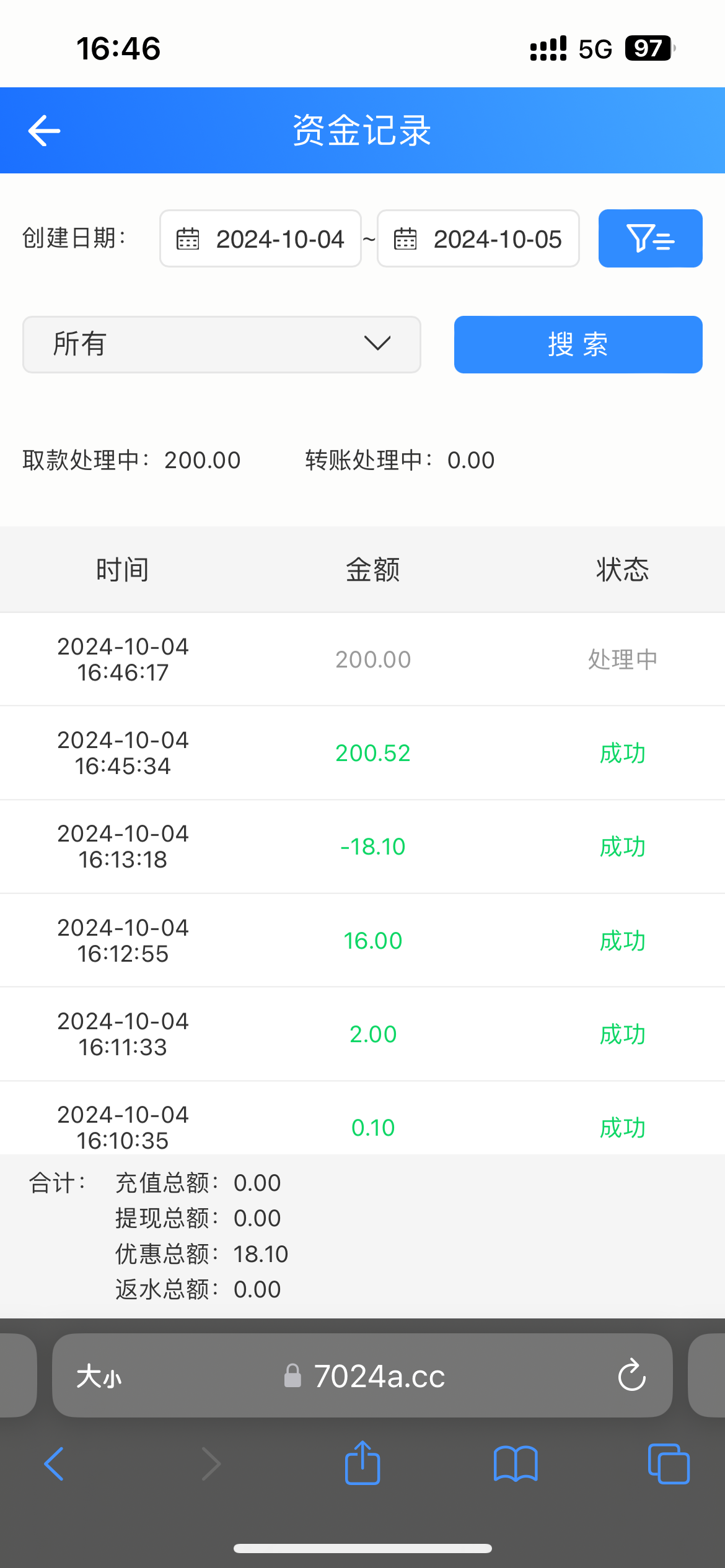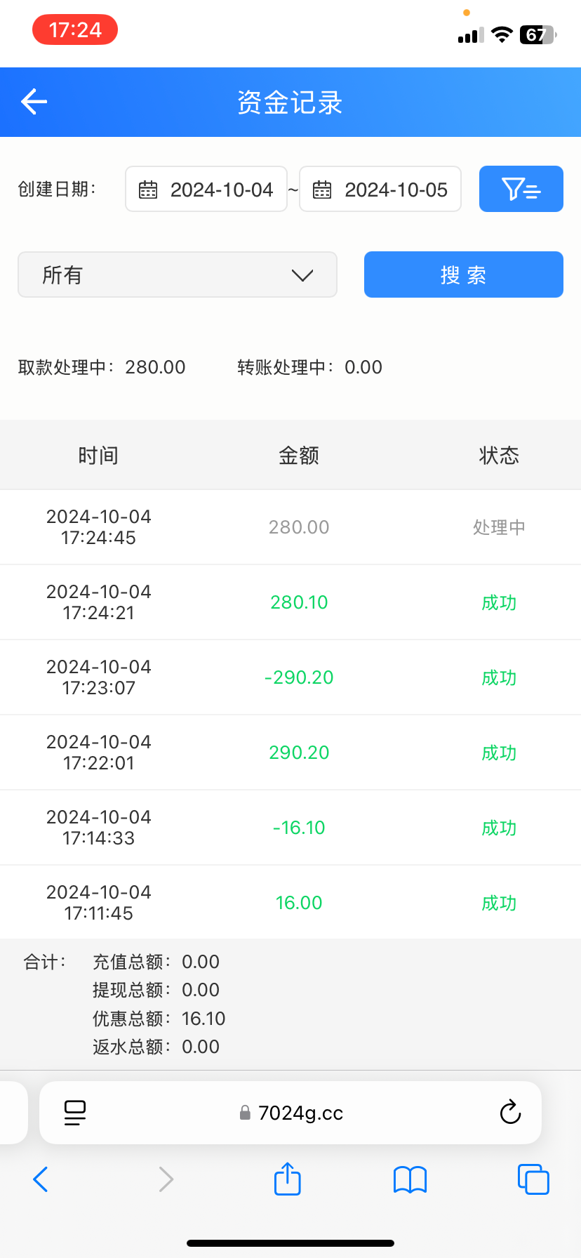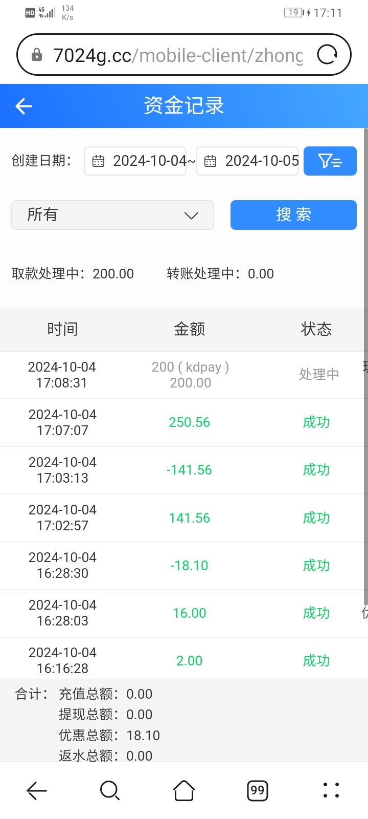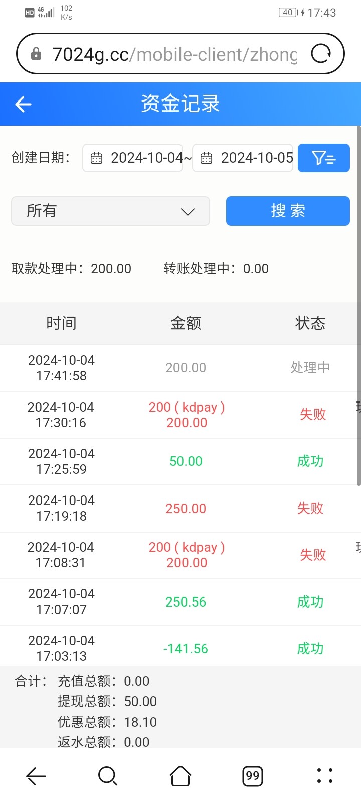 提款250,空汇50,显示提款成功50,退回200
