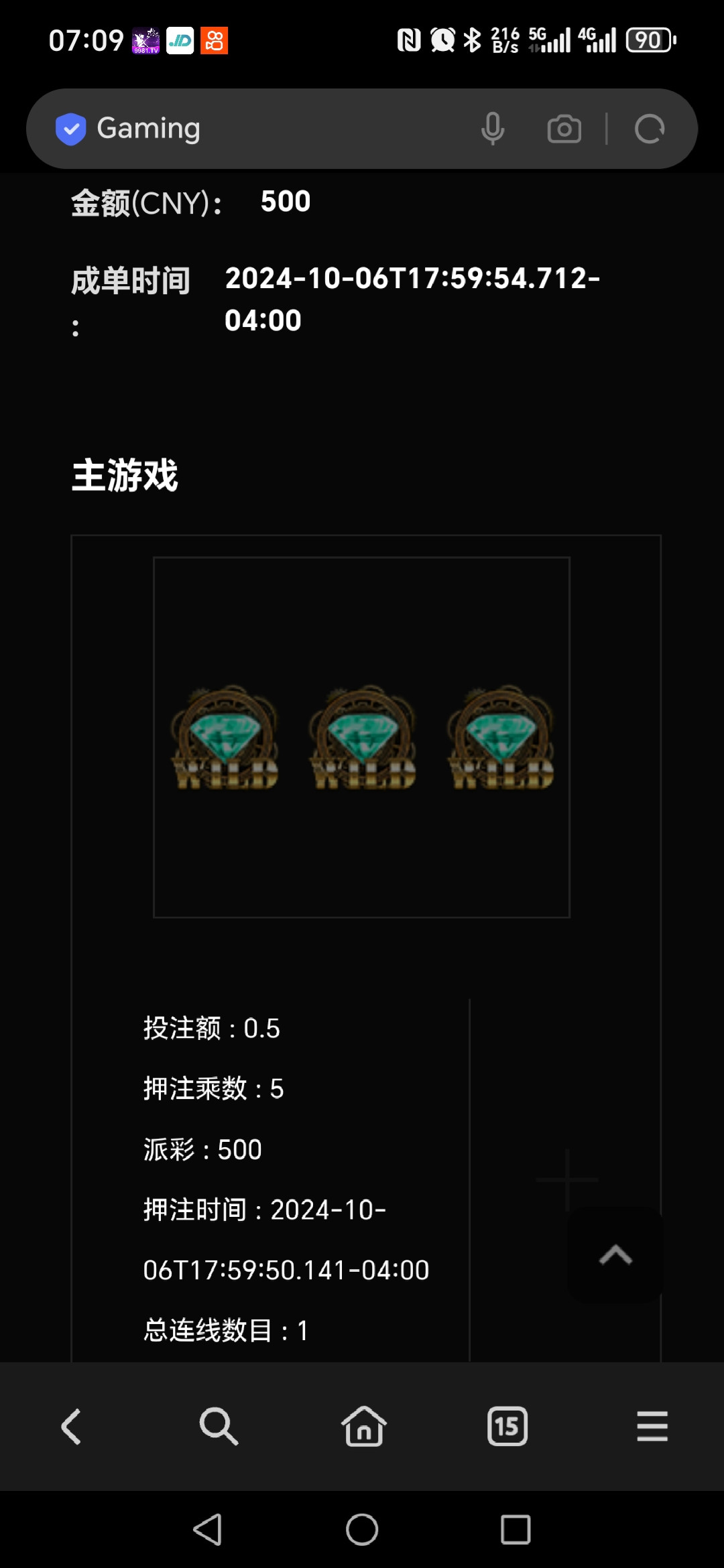 不过CQ9的777那个游戏爆了个千倍。。我特么只下注了五毛,草。