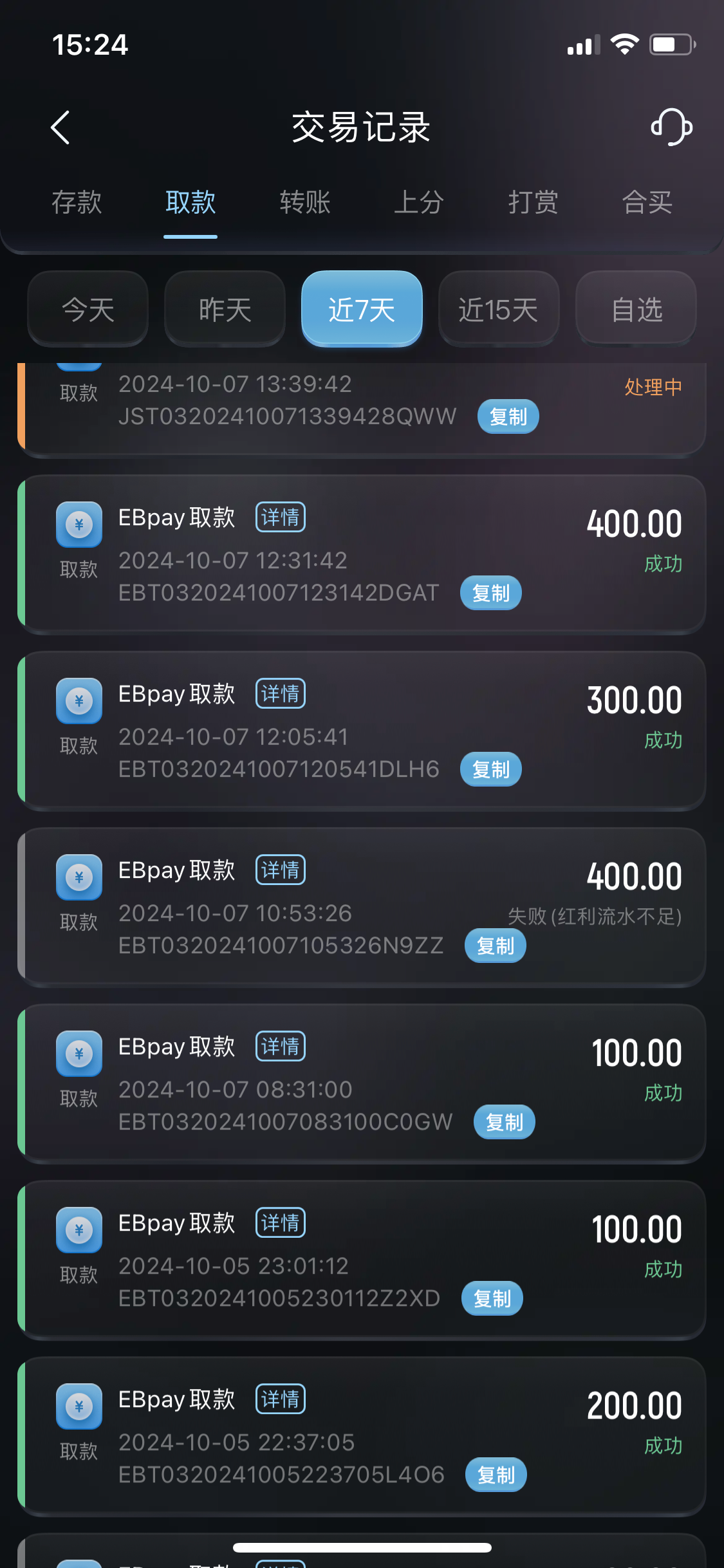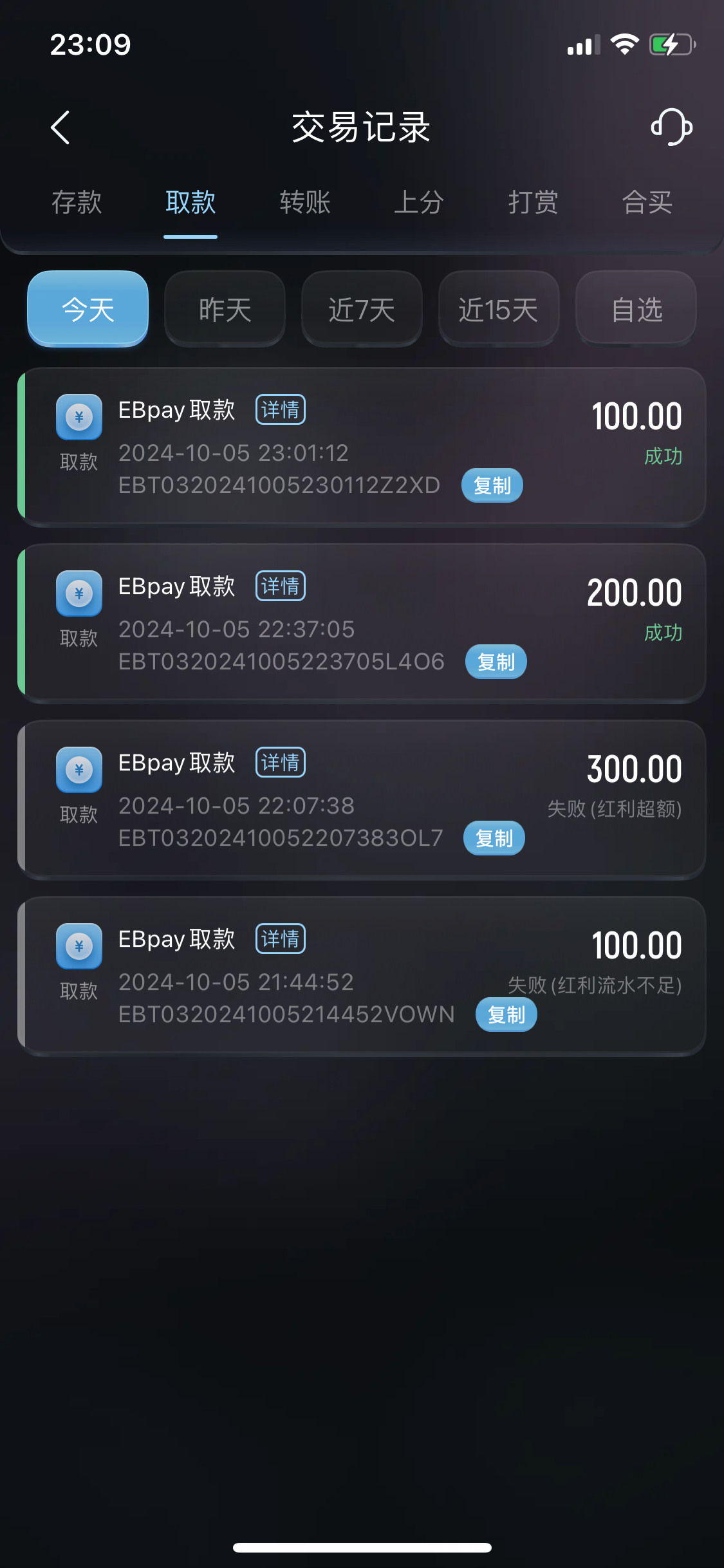 悦宝 ▶ 微风 你这是提现了多少我第一次提现300失败后面提现200成功了刚刚又提现100还没到 2024-10-5