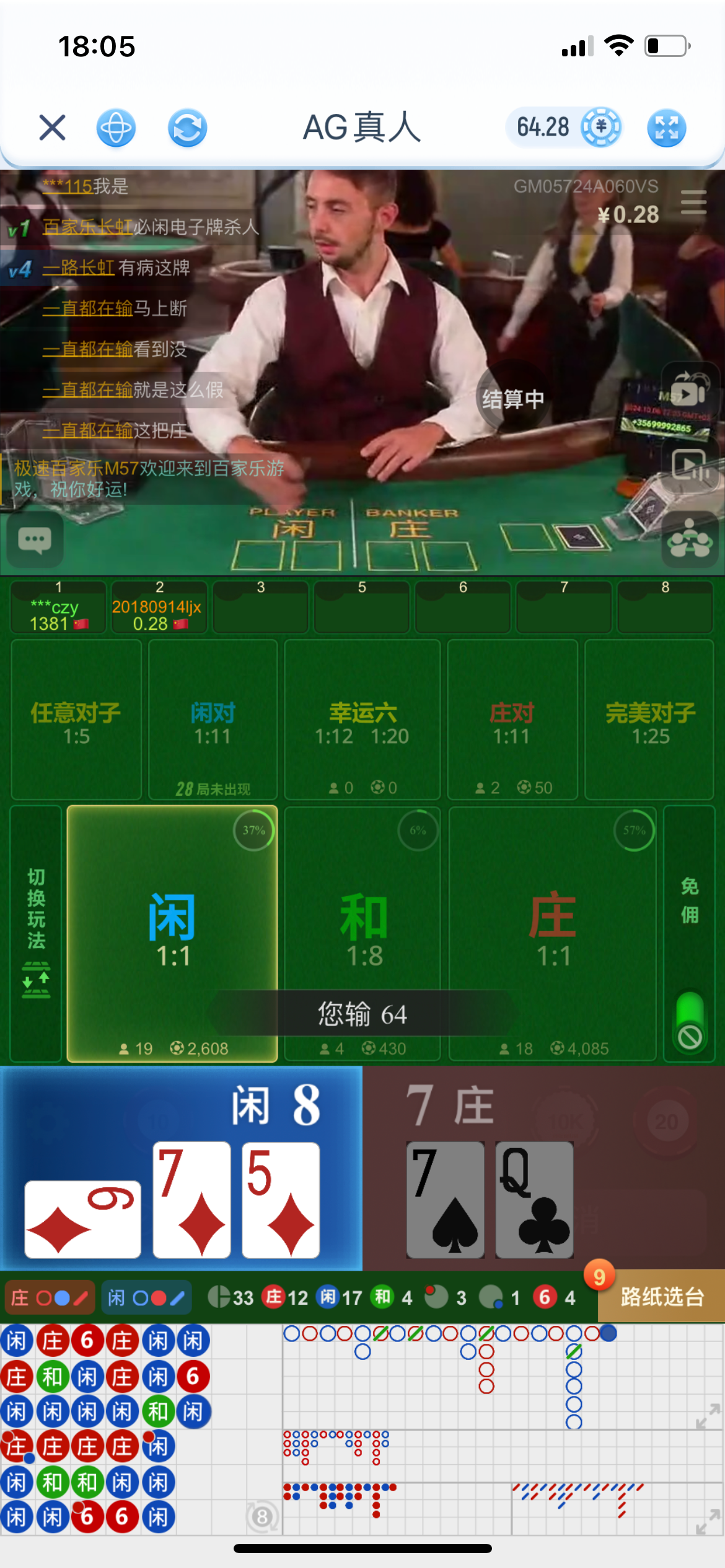 碰到了158,麻1免中免又免,36次一块的注给34.80,真人打差20流水点杀,下哪哪边补死