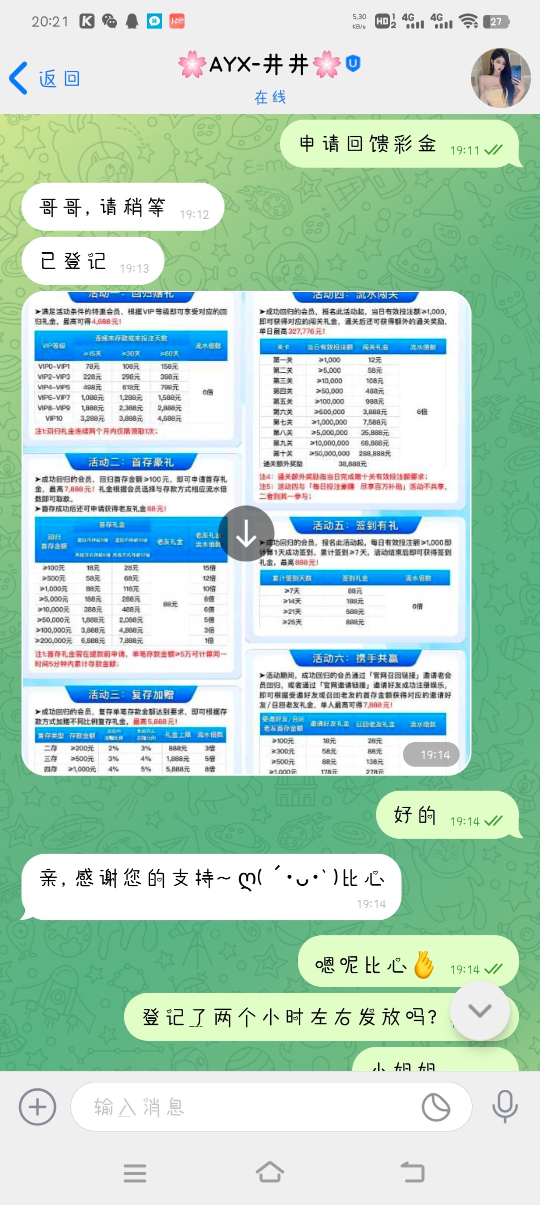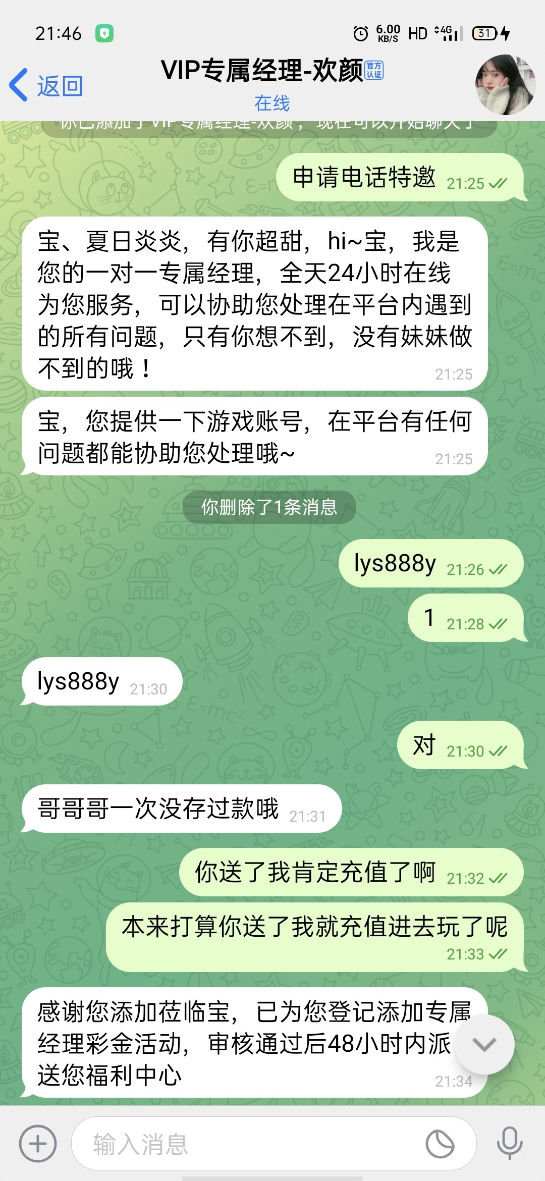 @熙颜 把你的专属经理ID发出来 我去碰碰 我这个经理说没有活动 我还充钱了的