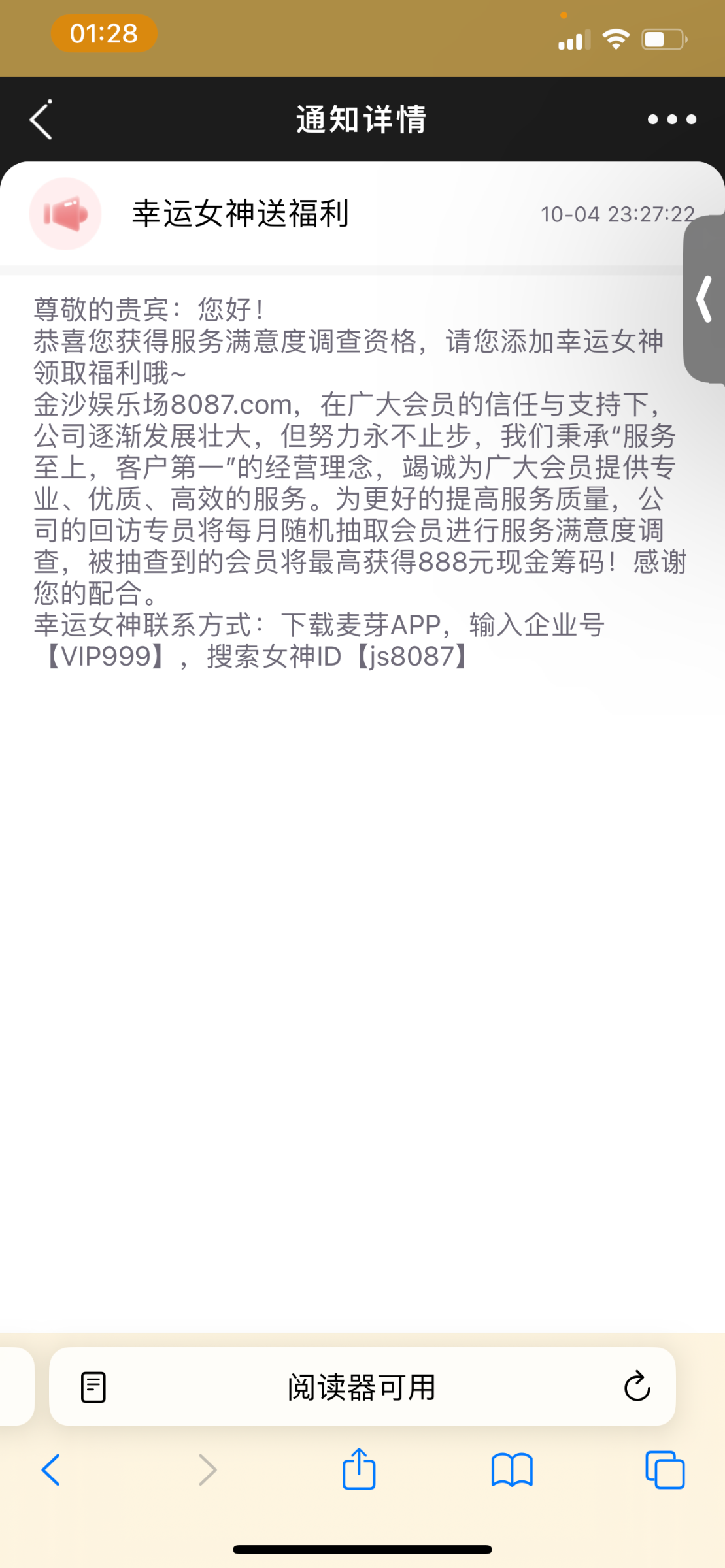 澳门金沙8087站内信幸运女神彩金有号的可以去碰 地址 8087.com