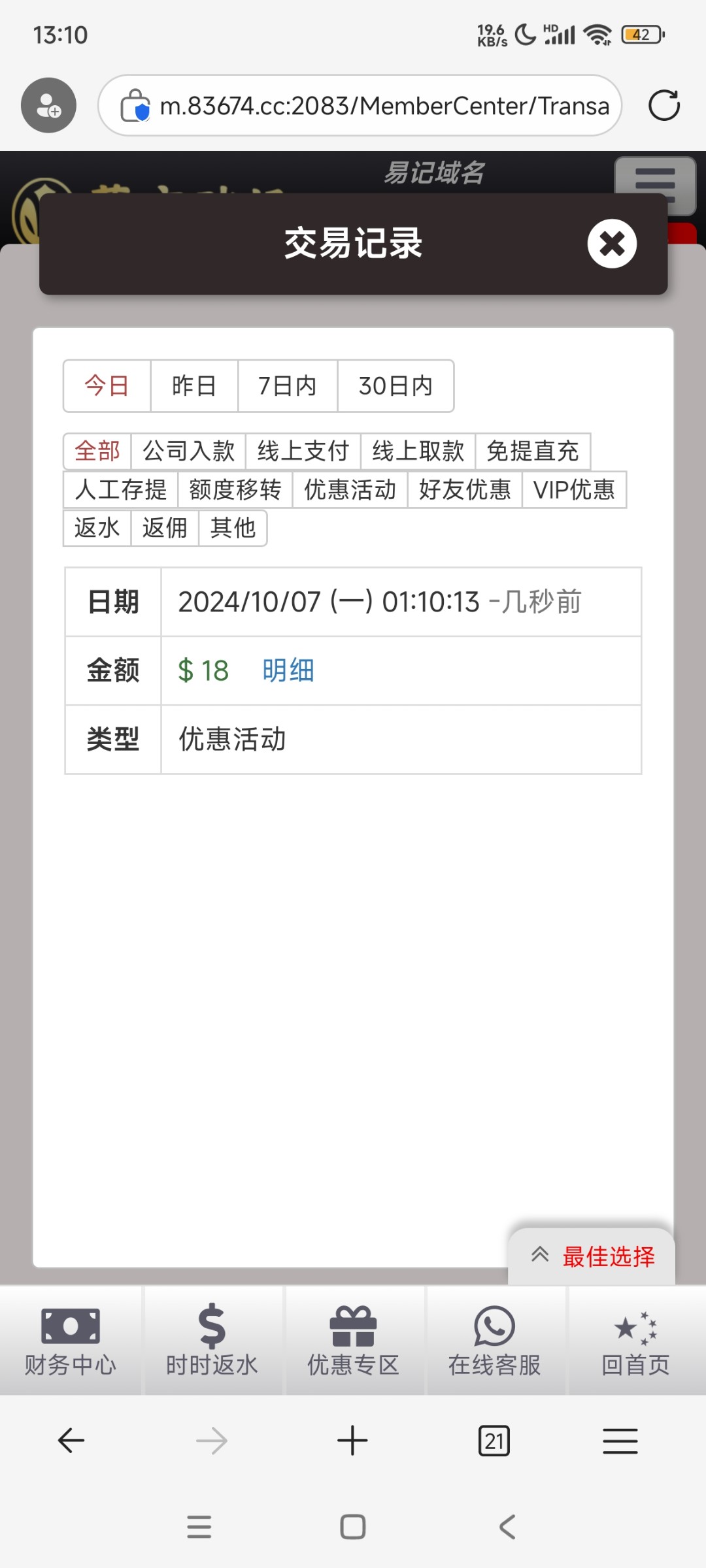 我没有充值过的 打电话给我登录就有18 有号的老哥可以去碰瓷试试 网址:4064.com