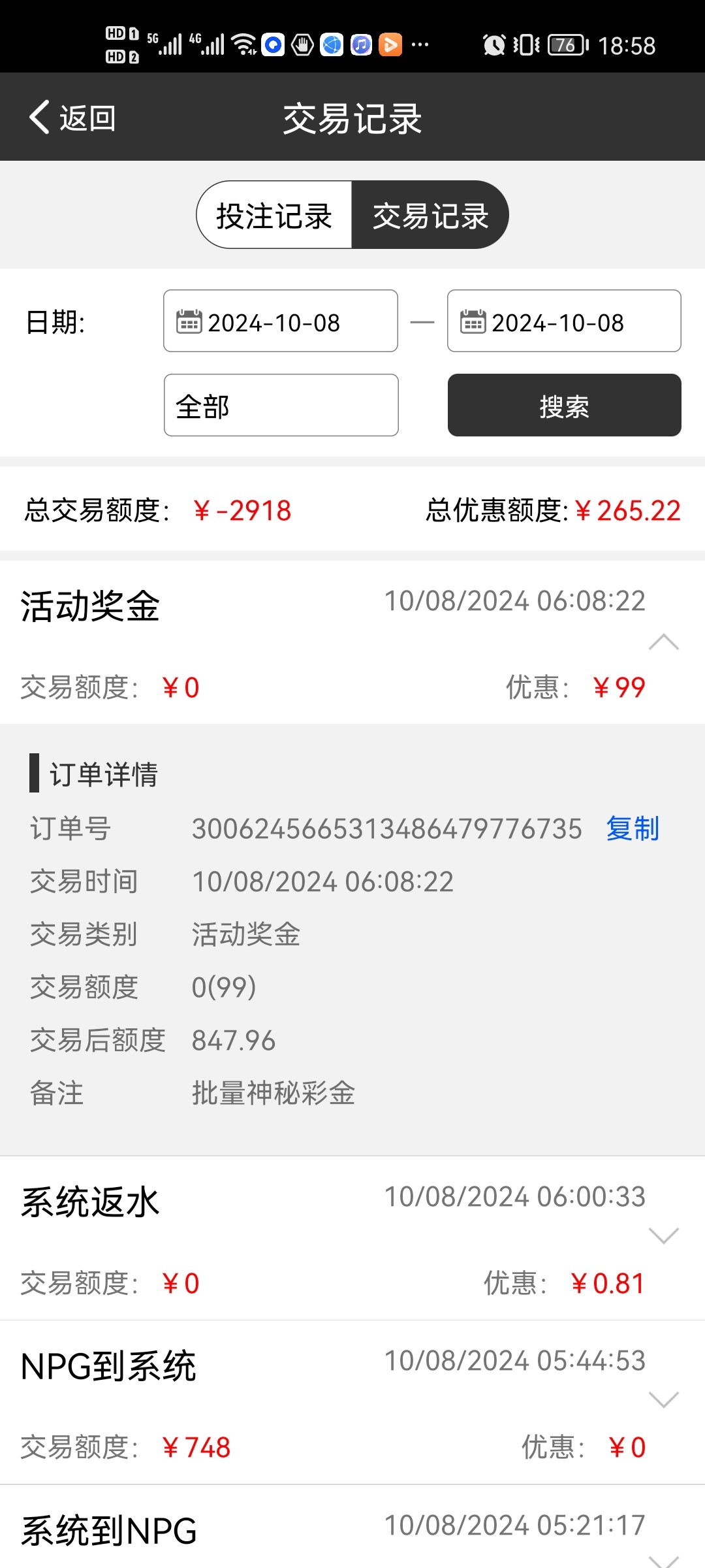 你不看看你自己充值金额,交易额度2918,这个网基本没什么人去玩都是撸了彩金就走了