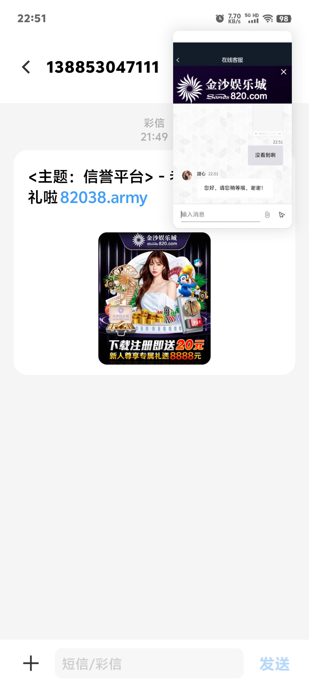 把你短信图挂评论里啊,造短信都没法造,你那里挂了个客服截图