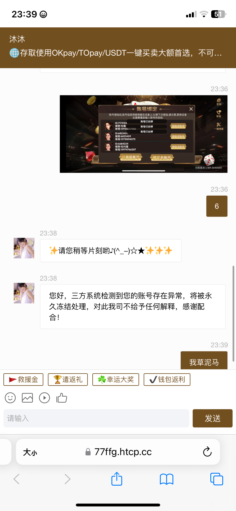 我11点上去抢了个红包雨 2块 然后我就去拉麻将 给我上了100 体不了 支付宝体现需要307 然后我就去了 打白家乐 打到307我就体现了 现在上去 直接被封了