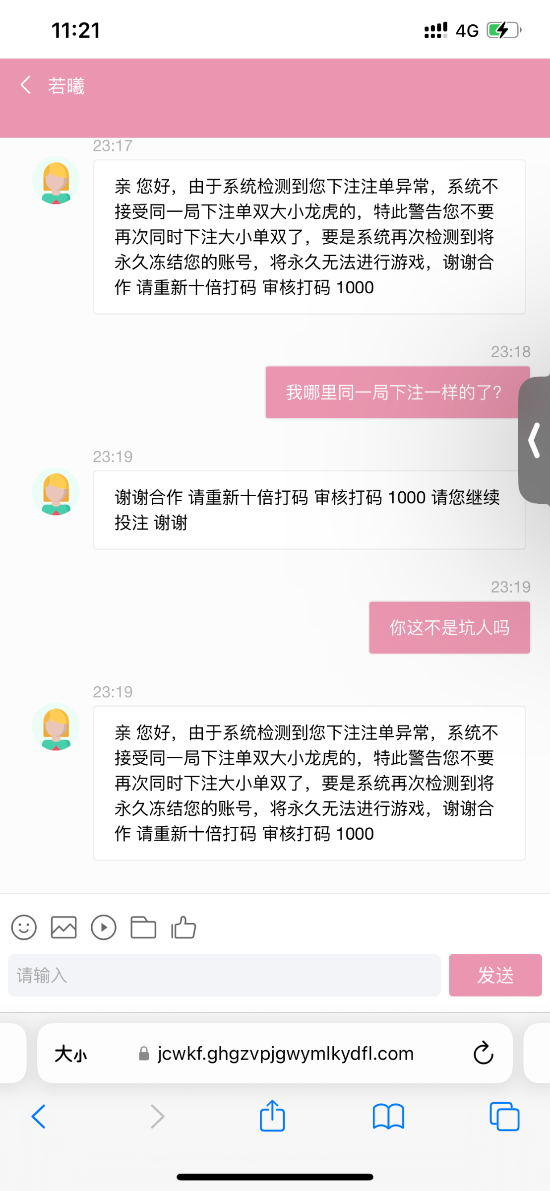 这个台子充的不多,只玩了6w流水,之前借了借呗,今天冲了100去还上了,玩了一会一直杀,后面打了彩票够100就提了,罚了10倍,第一次遇到这种,我还特意看了是不是两边都下了,根本没有,给各位老哥提个醒吧,可能是看玩的小又提了本金就这样搞