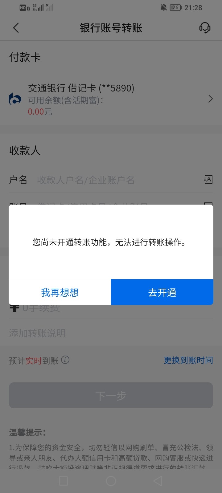 我的交通限制12000,一个多月才解开,解开以后网银已经没有转账功能了,以后只能微信支付宝消费转账用,还挺有良心的,给我留了后路