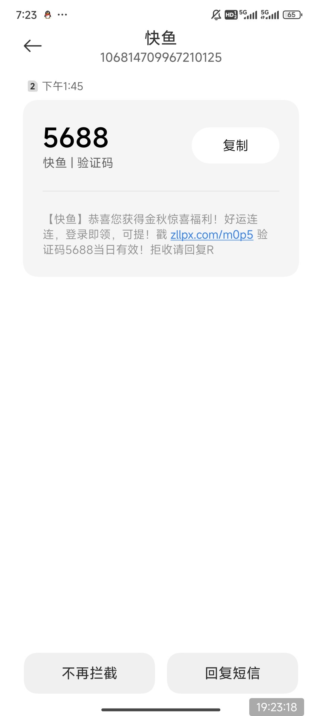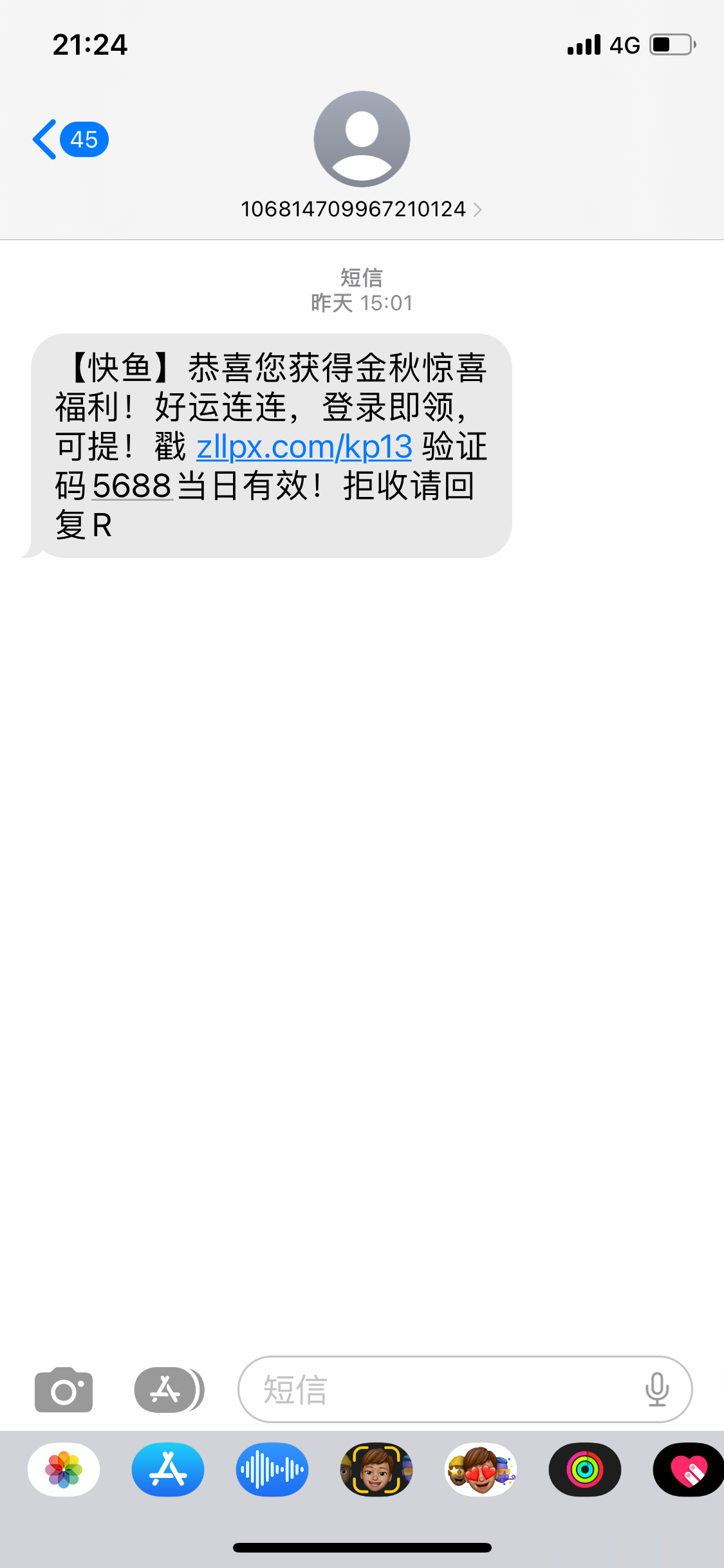 【快鱼】恭喜您获得金秋惊喜福利!好运连连,登录即领,可提!戳 zllpx.com/m0p5 验证码5688当日有效!拒收请回复R
