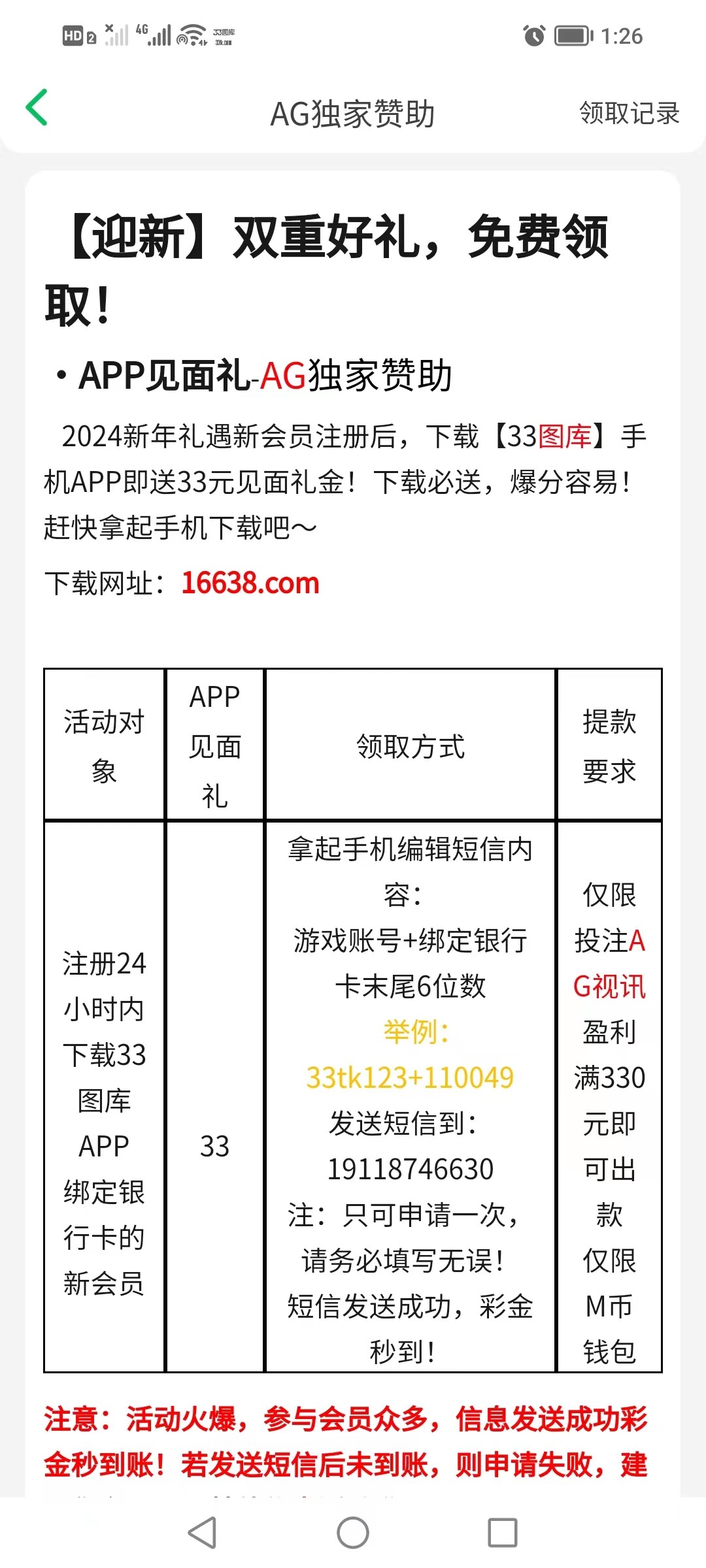 之前发过,刚亲测还可以领,还没有撸过的去试试,下载注册,发短信截图给客服送33,我送了没打出来。网址:33tkqq.com