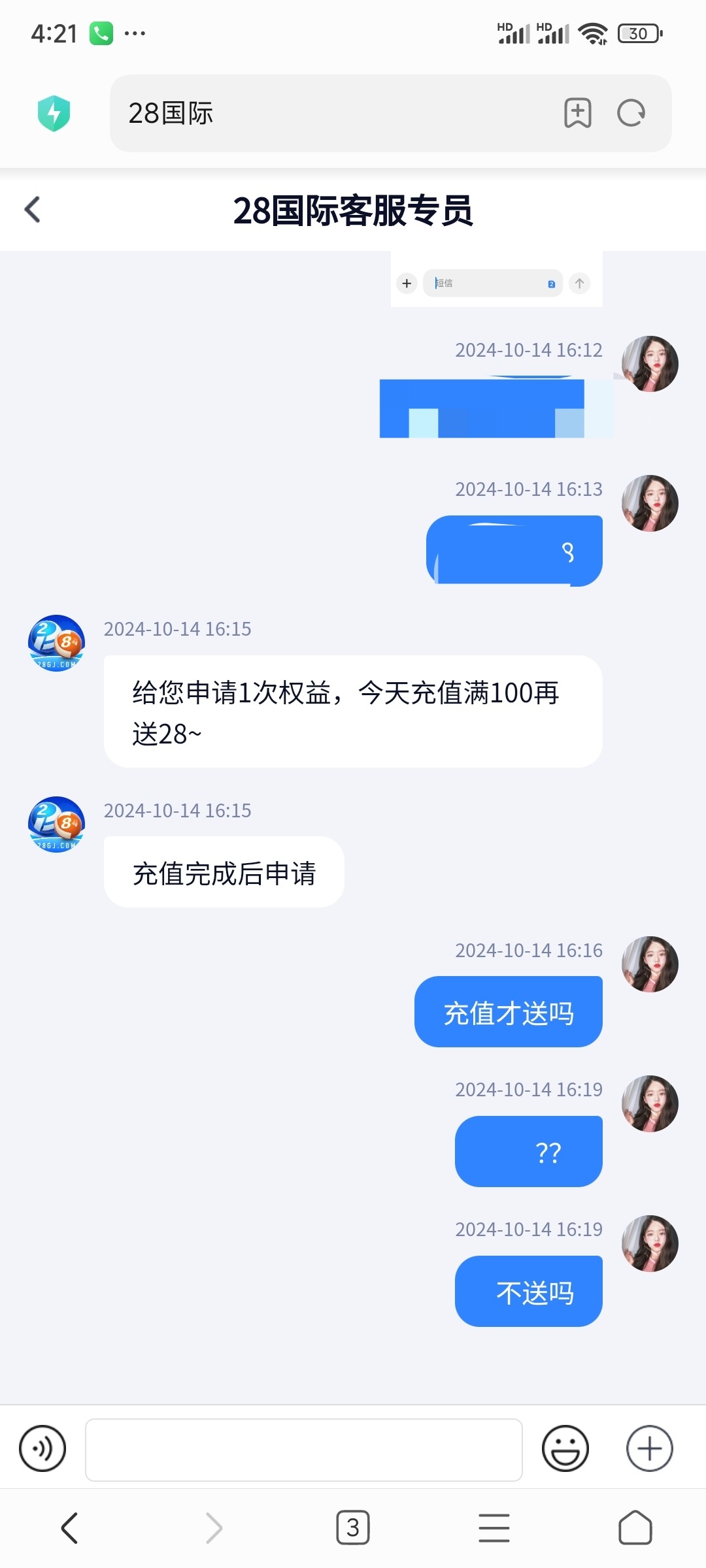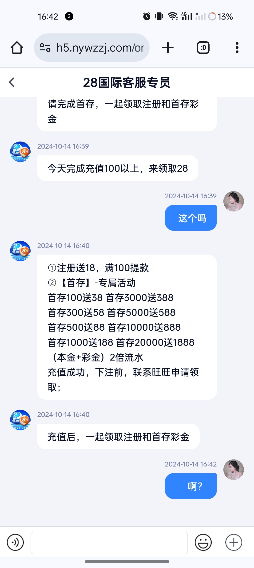 老哥网干中学吗 ▶ 小宝贝 注册送18,找客服还是自动送? 2024-10-15