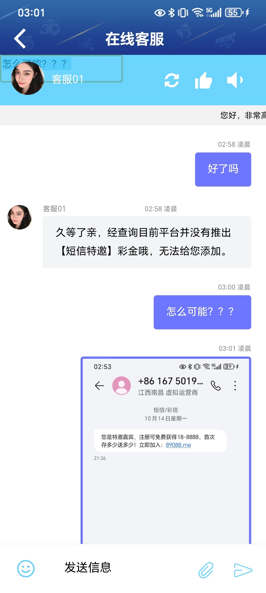 @qwe973344 ,你都不会碰啊老弟!10月14号的短信 这都他妈快1月了 哈哈卧槽