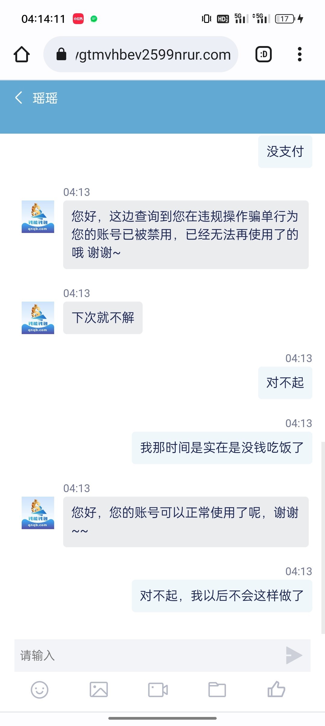 兄弟们,不是今天那个钱能客服结婚了吗,这么好,给我解封了,妈的怎么这么奇怪啊,一下子就给我解开了,我人都是懵逼的。太感动了,真是谢天谢地,鼻涕都出来了。这个客服,我以后要嫁给你给你做老婆报答你,就算你不喜欢男生我也可以做女的