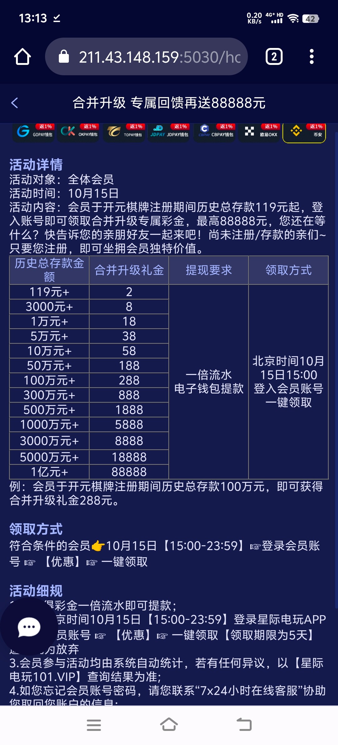 开元棋牌 119.vip 合并到星际101.vip 之前存款彩金可以领