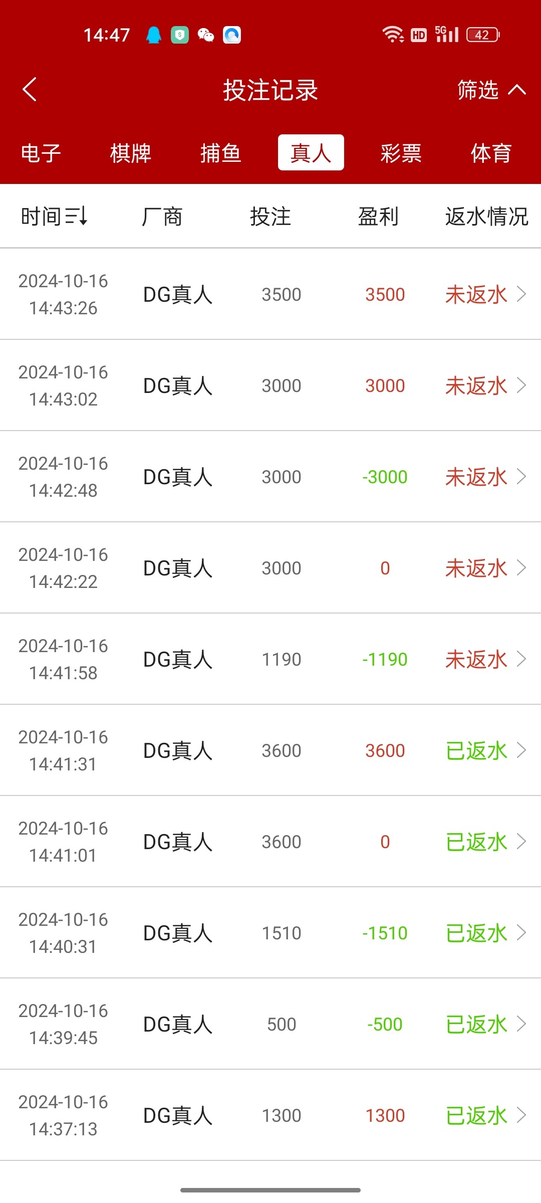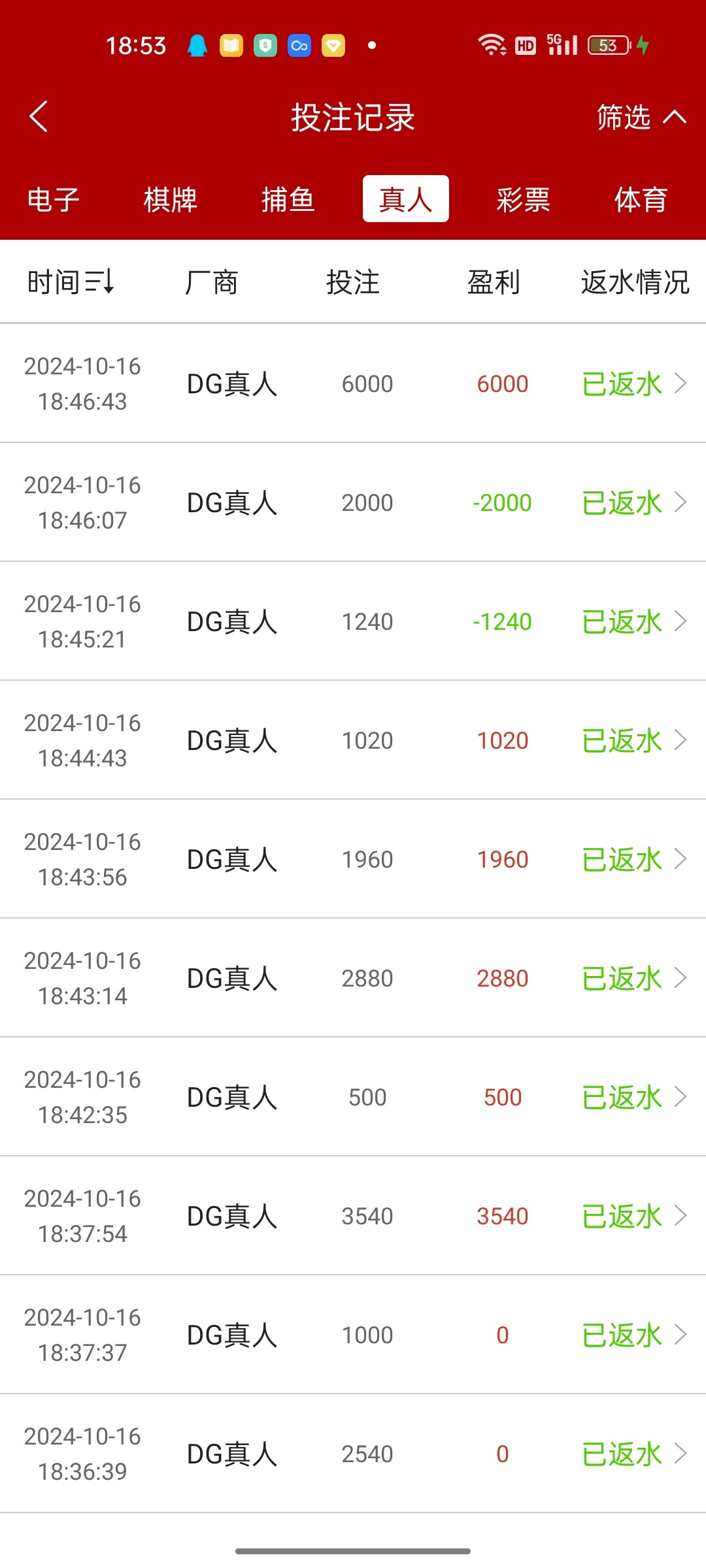 说明一下我没有跟龙是来回换房间的我喜欢屠龙,总共投注了69笔