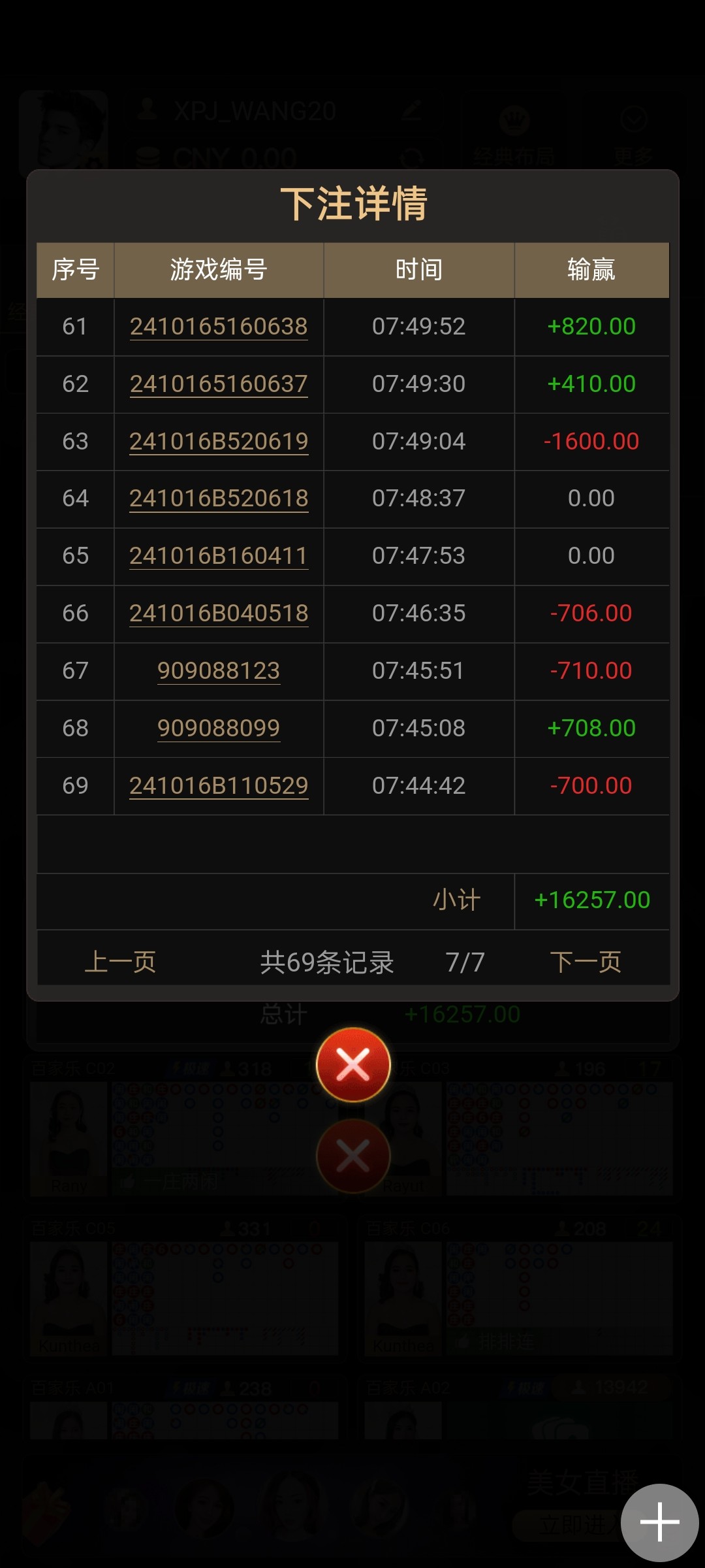 你去看看有没有幸运注单 尾号有7都有不少钱。你一把投注那么大。我经常有尾号7的注单