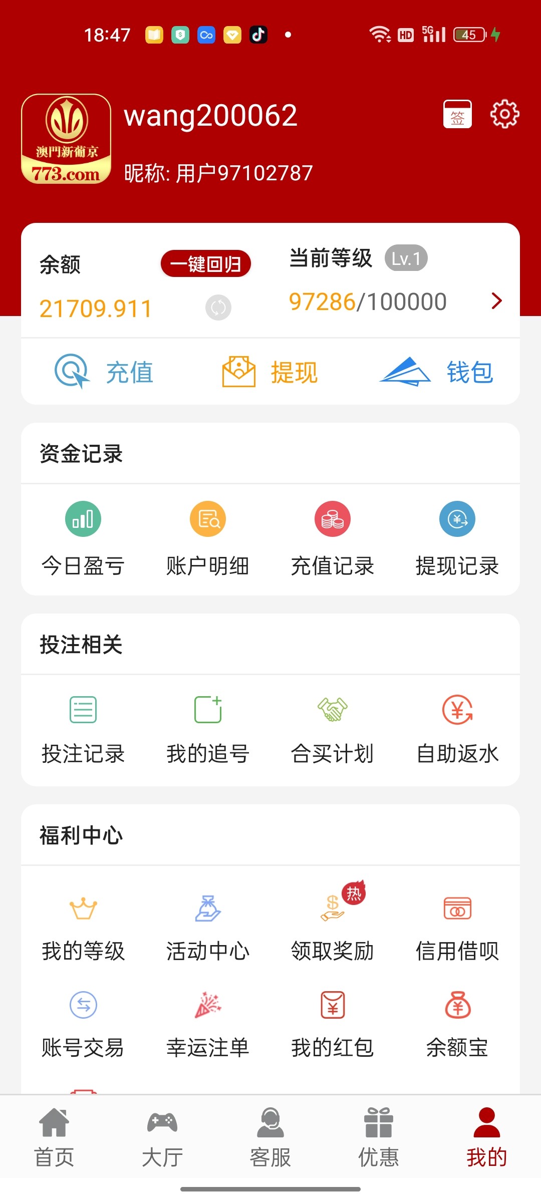 昨天洗白问之前充值过100的人要了28彩金然后在他那个台子下了,来773打了,773是我今天早上6.30注册的,本来是想漂一下那个首存彩金的奈何他不给只能靠实力了,在群里面都团过牛子和香烟拉单了,纯纯交流一下你们发现没白嫖的彩金更容易打出来,我只能说这是我小赌神靠28彩金一夜到现在到手1.3w