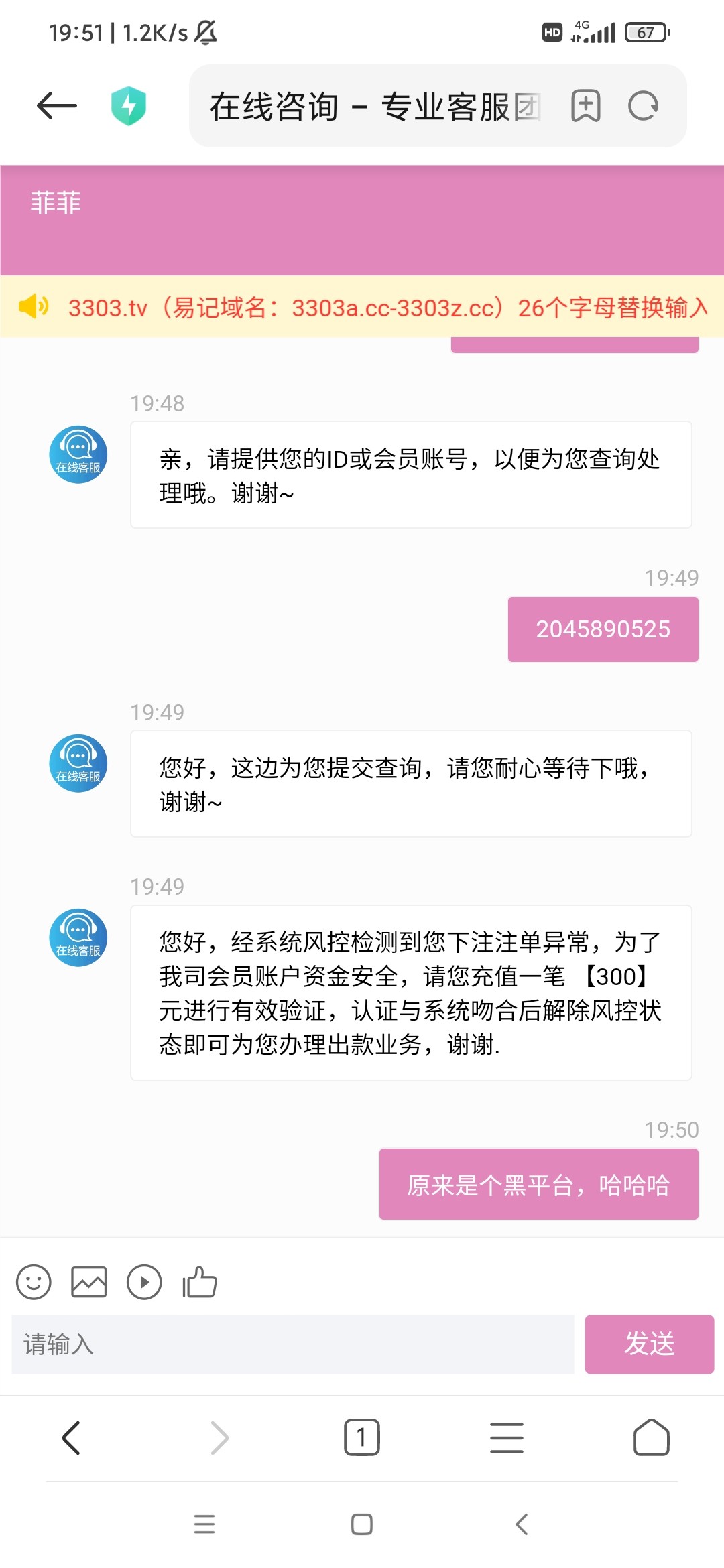 我也是刚刚接到电话然后打上了140提款100刚来老哥这里看了一下你们说黑台我就不报希望了然后给出了
