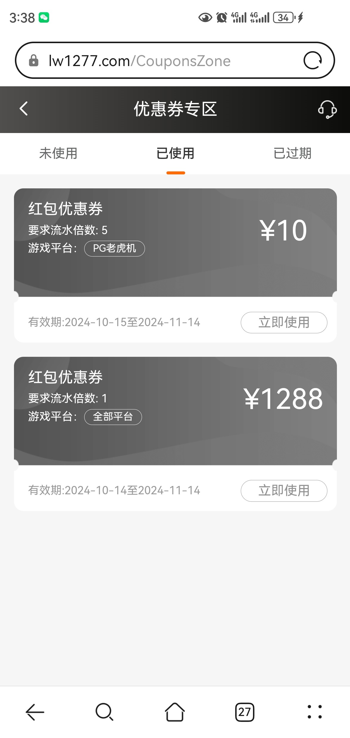 我几年的号了,这个月才看到有存100送128的优惠券 ,之前最多就是100送50的,那种直接送可以玩的估计等级高,总比头号玩家好,头号那是真的一分不给,铁公鸡,优惠券从来都是100送50,新人就给你赢一次 后面一直杀
