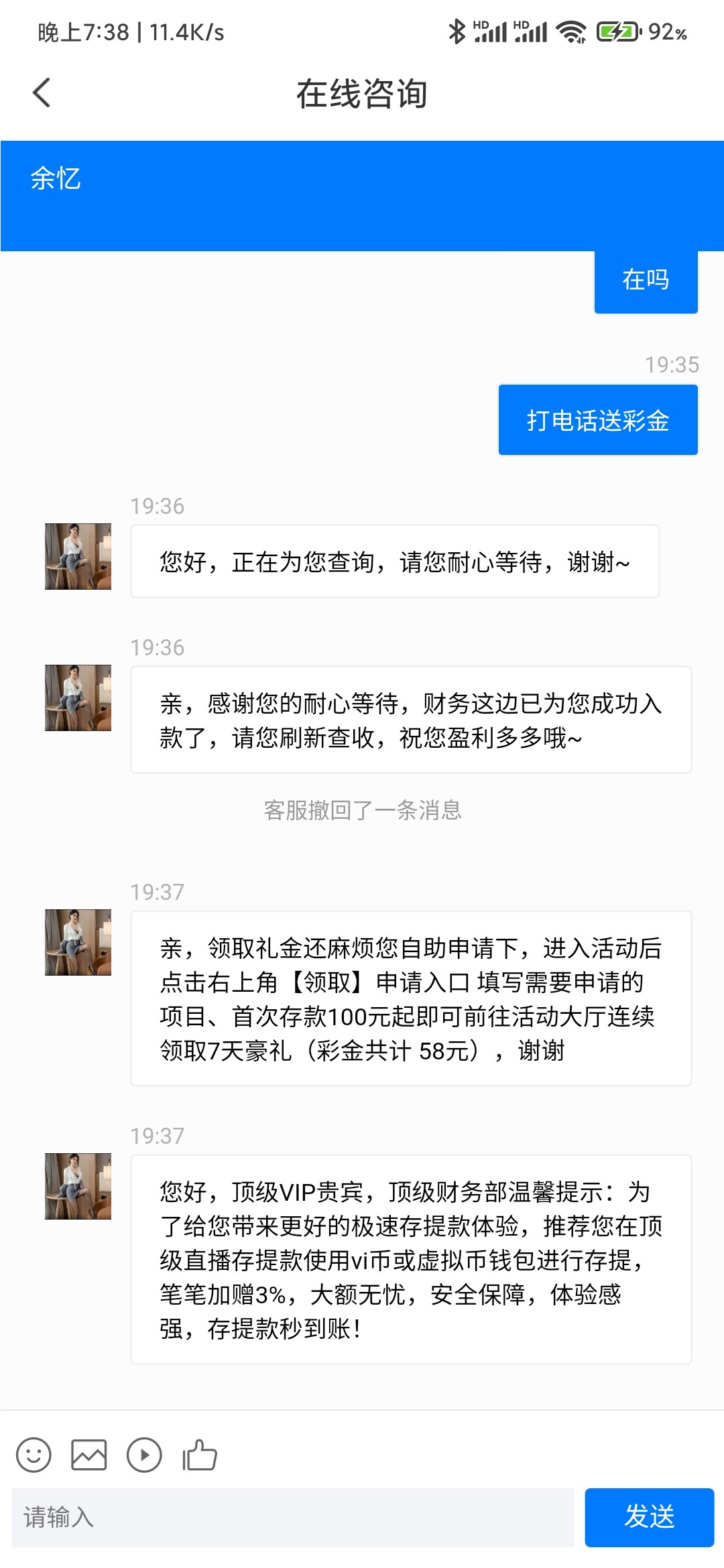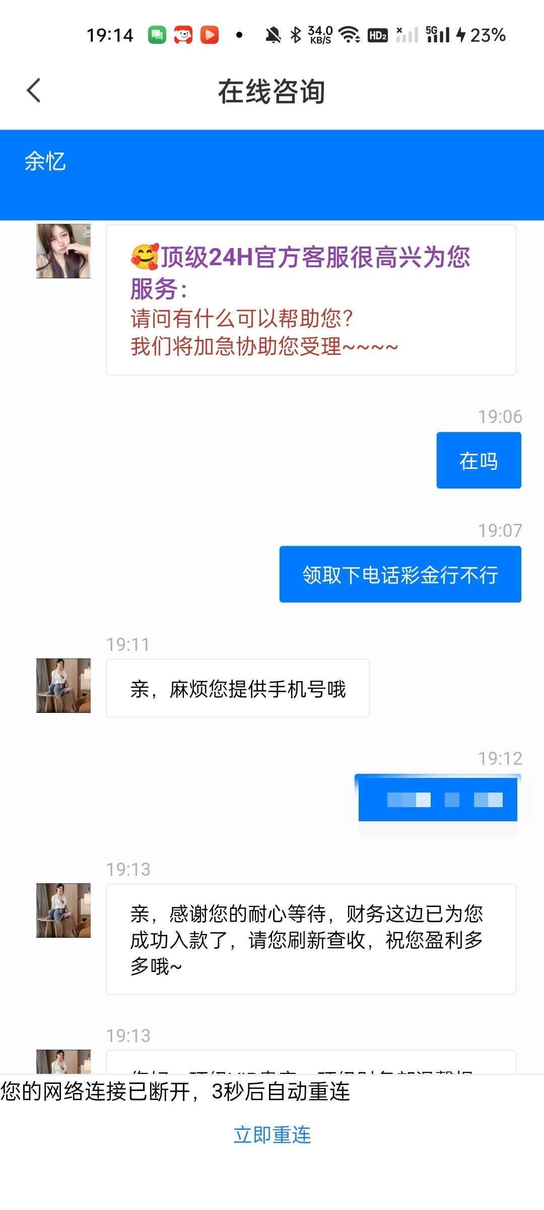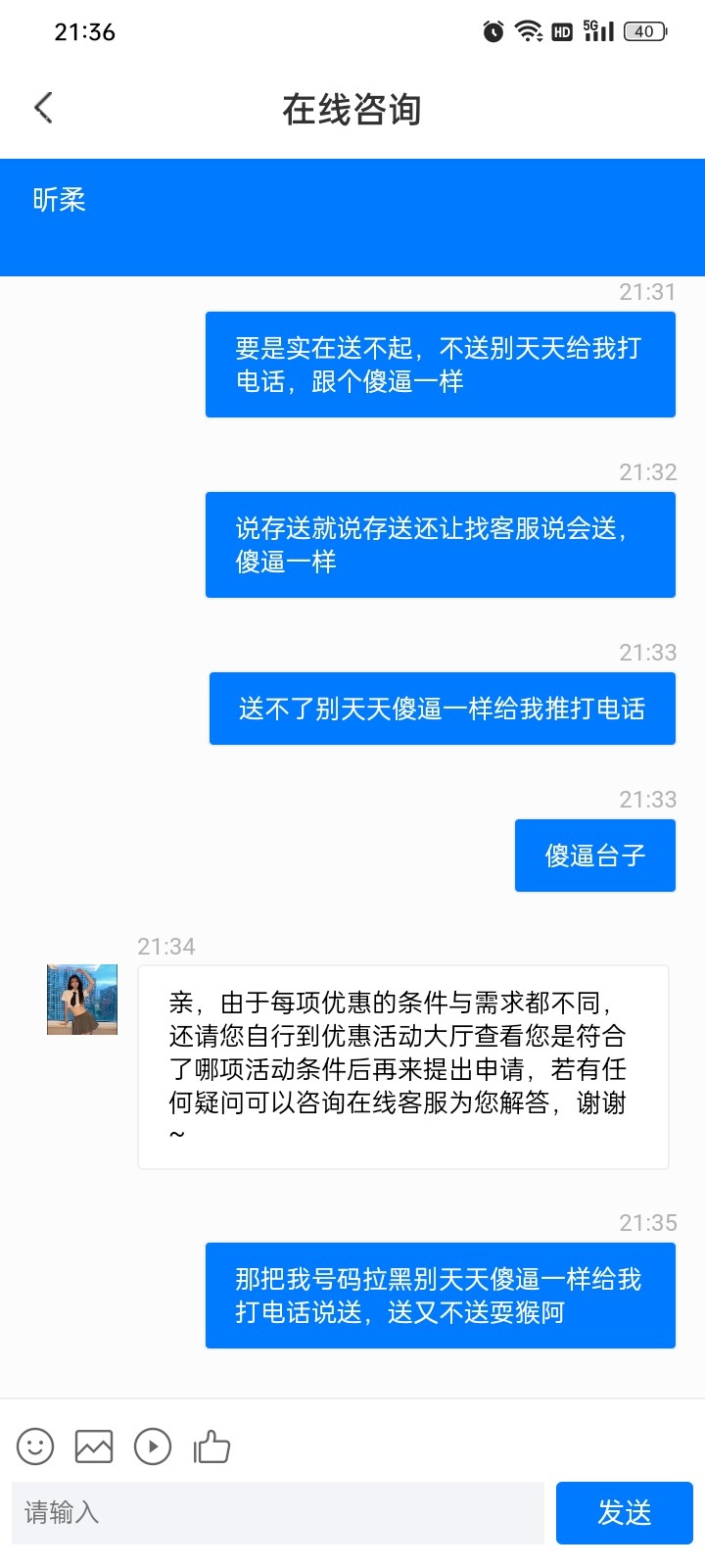 接到电话的、去申请叫你充值的你就换客服、我跟那个傻逼昕柔申请一直叫我充值、后面换成余忆就给了、自己看我话述