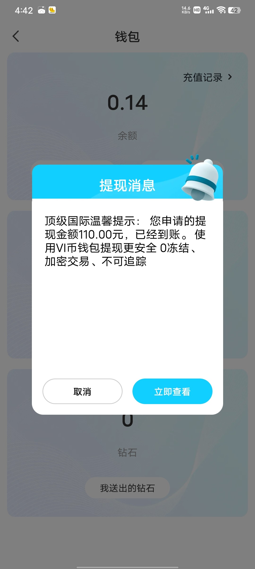 我提的是他们平台的钱包秒到但是要充30 一共也是出了400