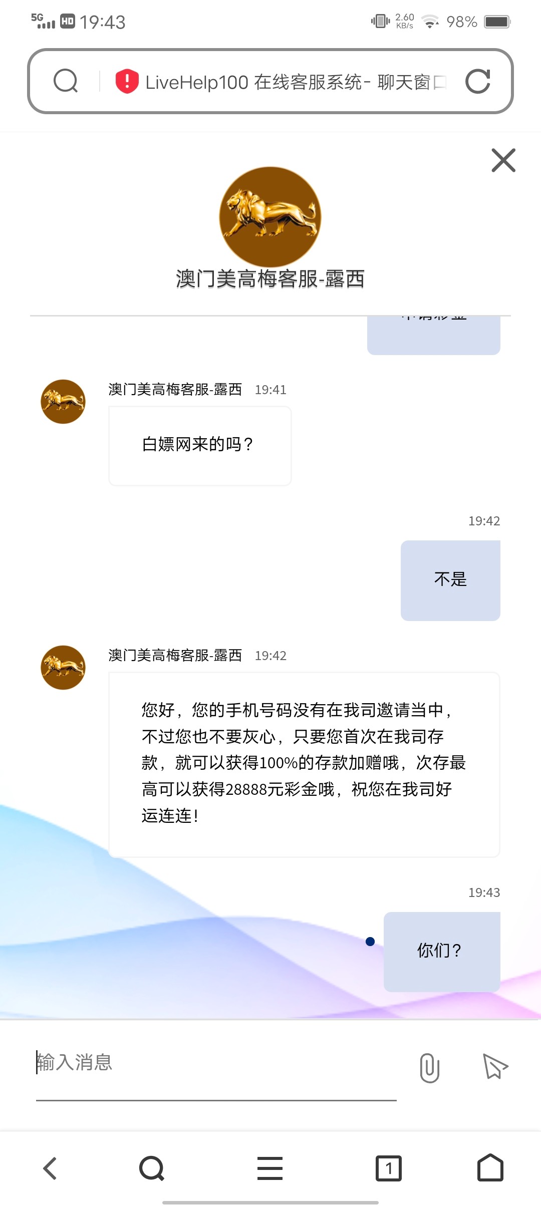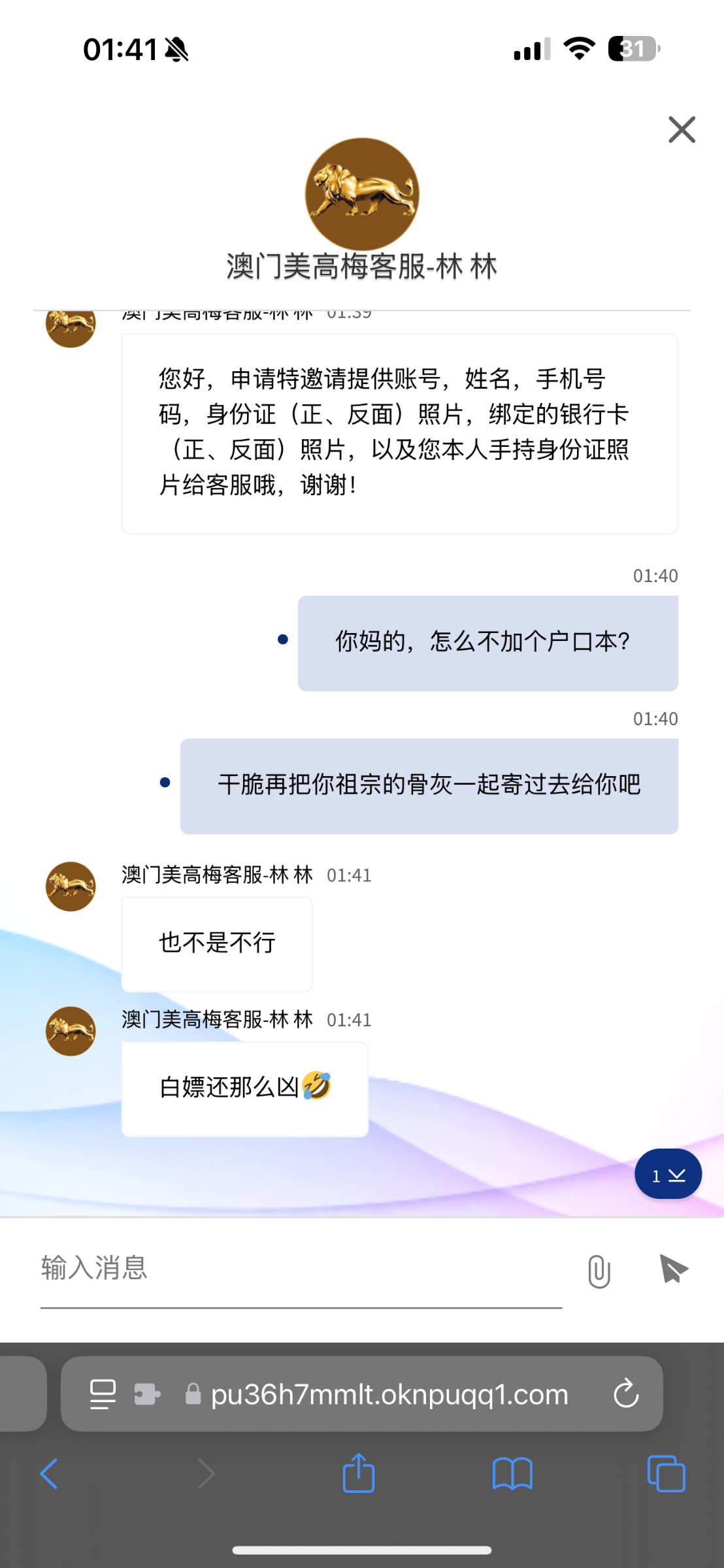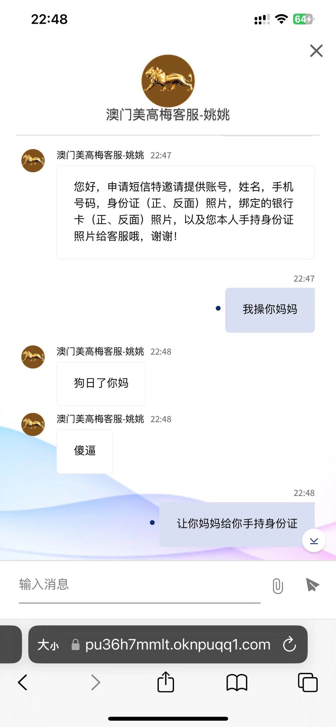 牛逼。我昨天还是前天收到这种短信打开也是这个美高梅。刚刚去找他就回一句白嫖吗?