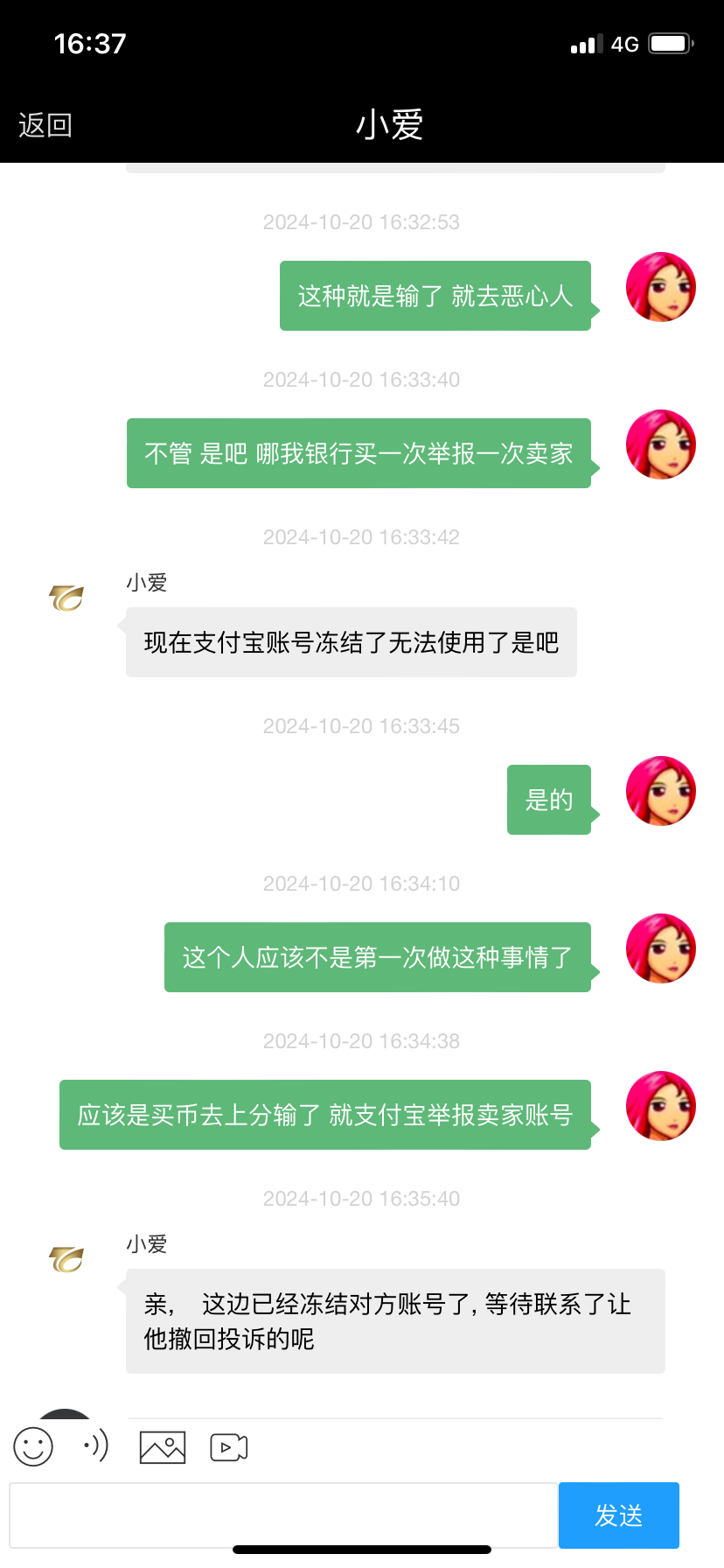 找支付宝客服申诉呗,你就卖个币,又没有引诱他赌博,