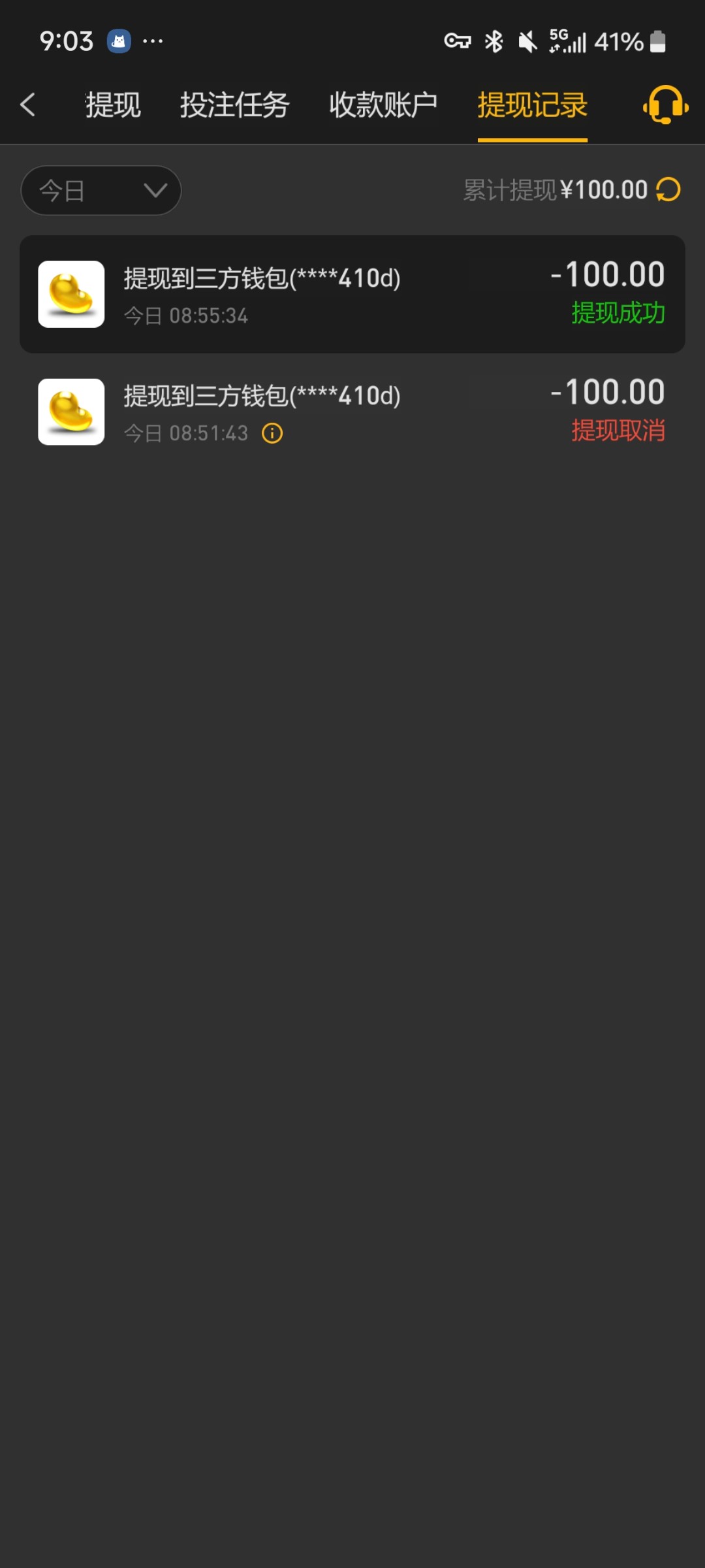 出款情况:自测(