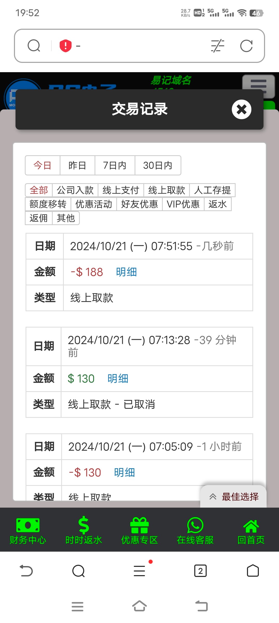 出款情况:自测(禁止充值)
