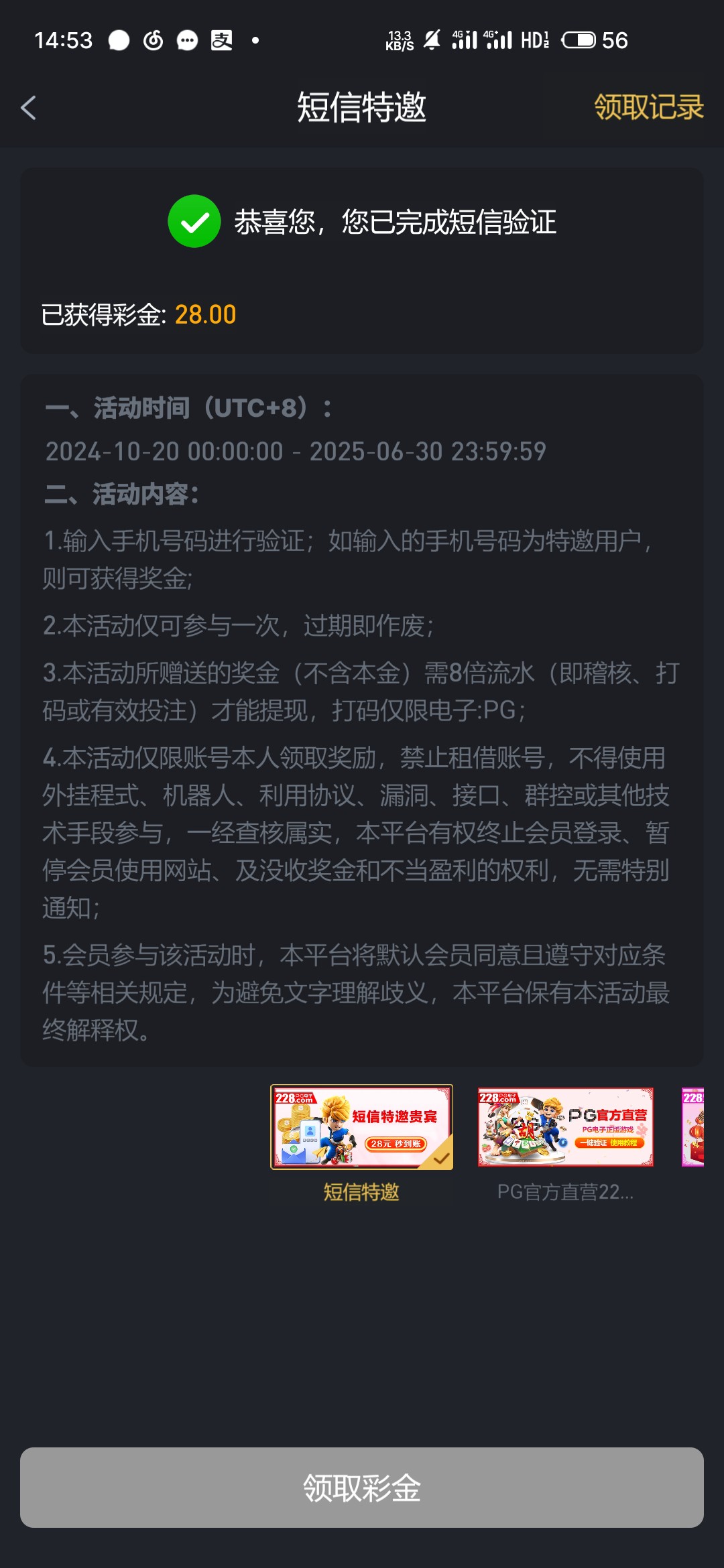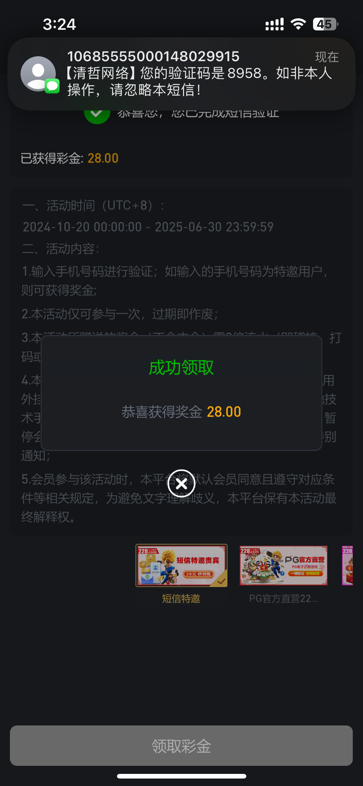短信特邀直接注册进活动验证手机号领取,没短信的也可以碰一碰。228.com