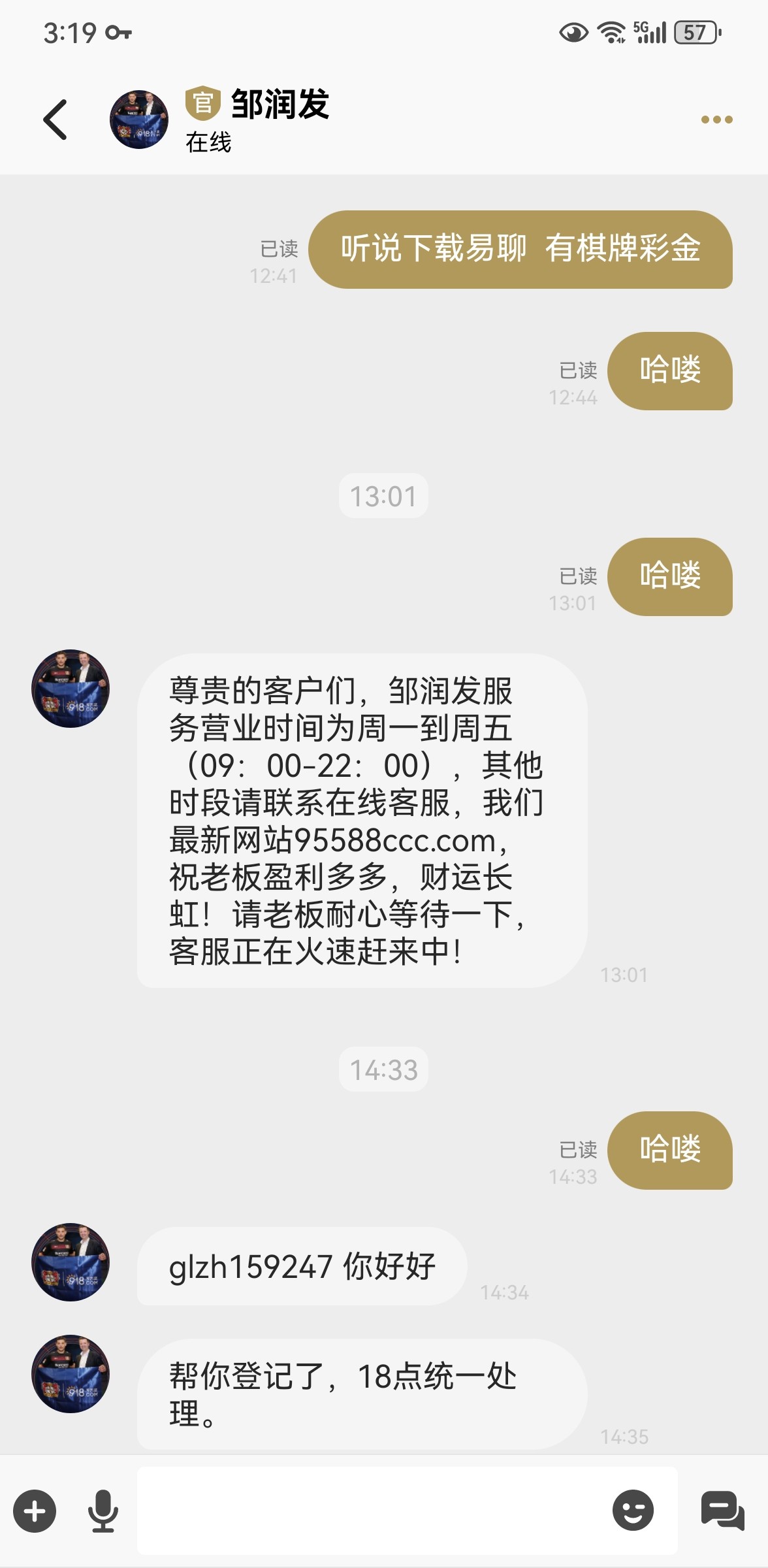 我去年也是下载这个易聊,天天抢红包,然后几乎那几天,天天反诈打电话过来,请去喝茶,你们有同样的吗。不过去年逮着这个台子抢红包也是真爽