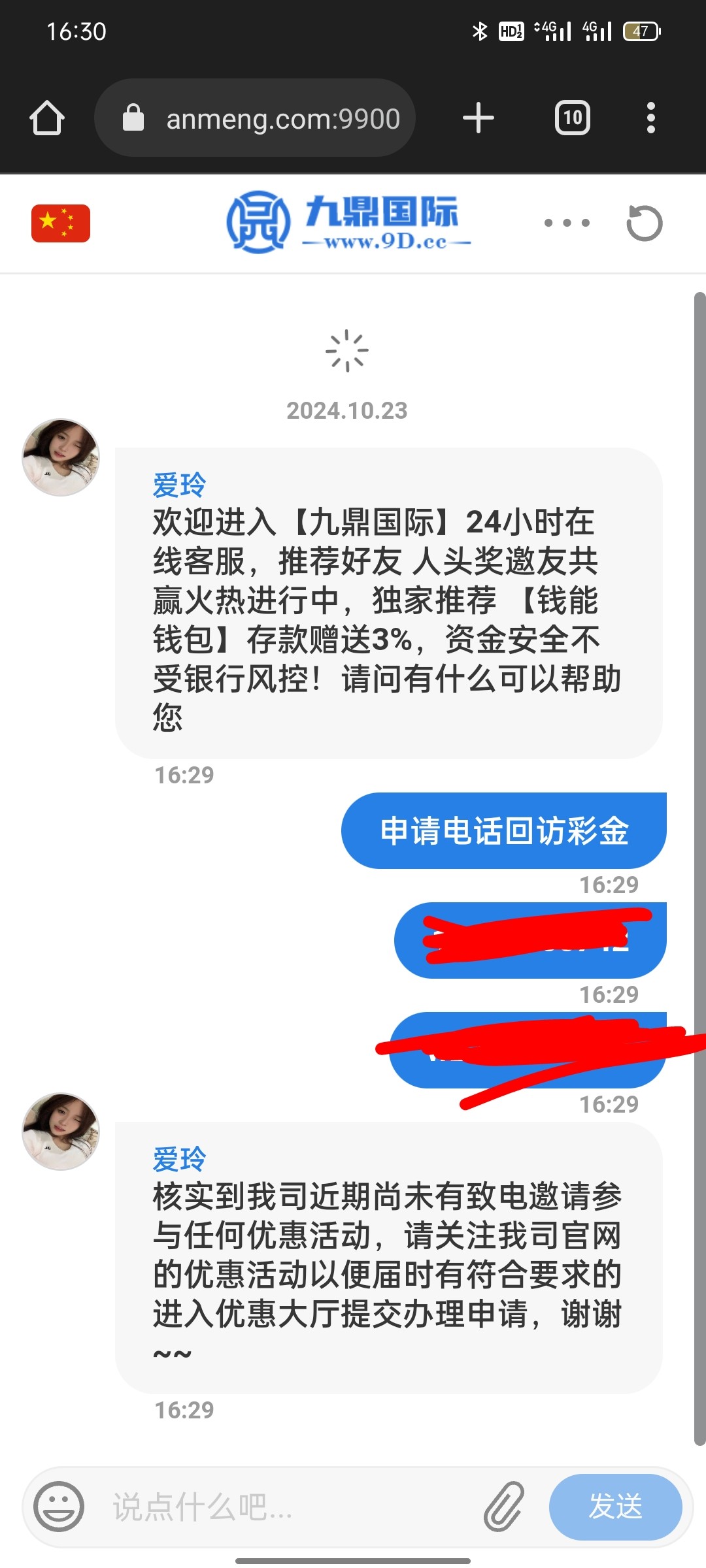 9鼎电话回访送了38,漏接的老哥可以去找客服申请!网址9d.cc