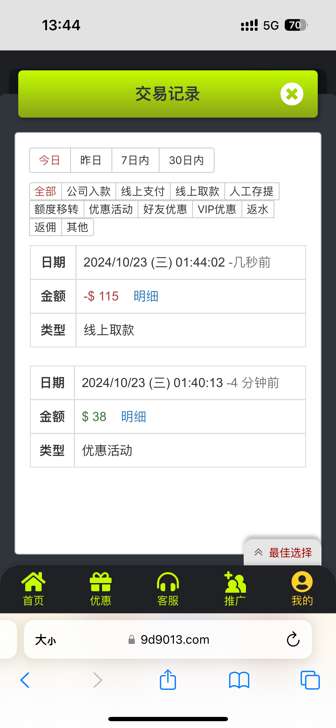 九鼎这个狗比平台早点倒闭吧 玩了几个月了 存款也有十几个了 说锁优惠就锁了 理由就是系统抽查不活跃 反水什么都没了