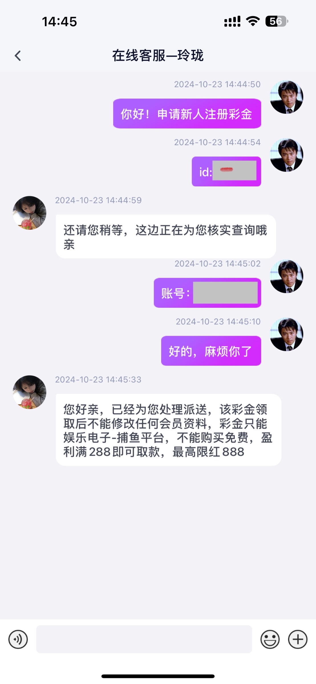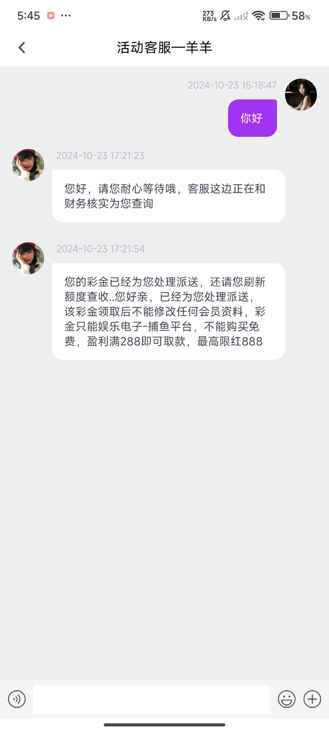 首存100+100 流水和最低568提款都满足了 不给出 大家注意这台子