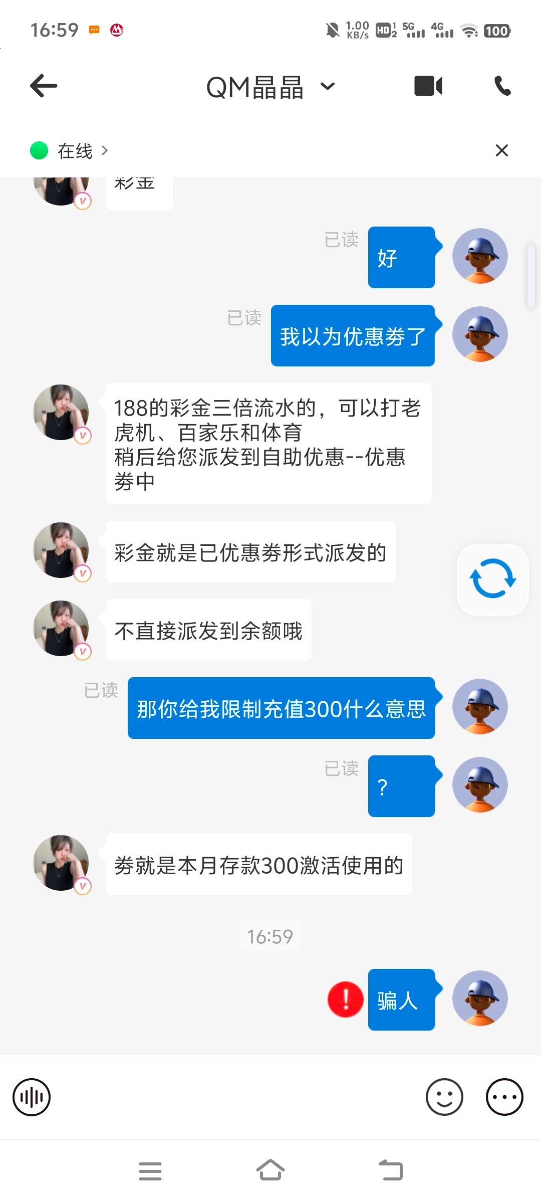 打电话说188,结果要充值300,说是3水亲,测提现已黑!