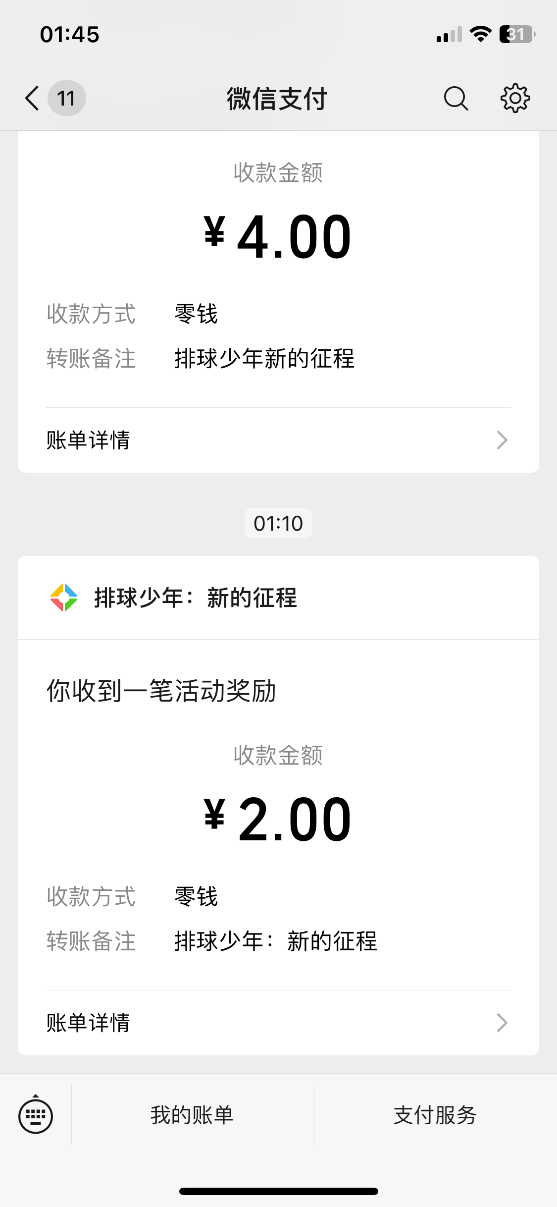 如果方法1理解不了那就直接微信游戏搜索排球少年下载玩15级领4块,多微信走大号链接,拉一个小号再拿4+2,签到两天再拿一块