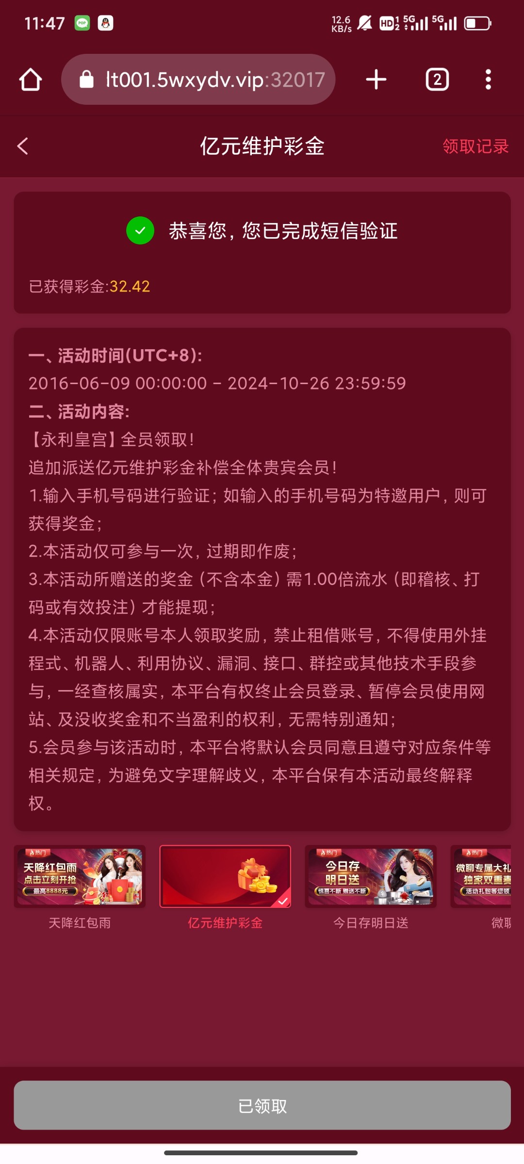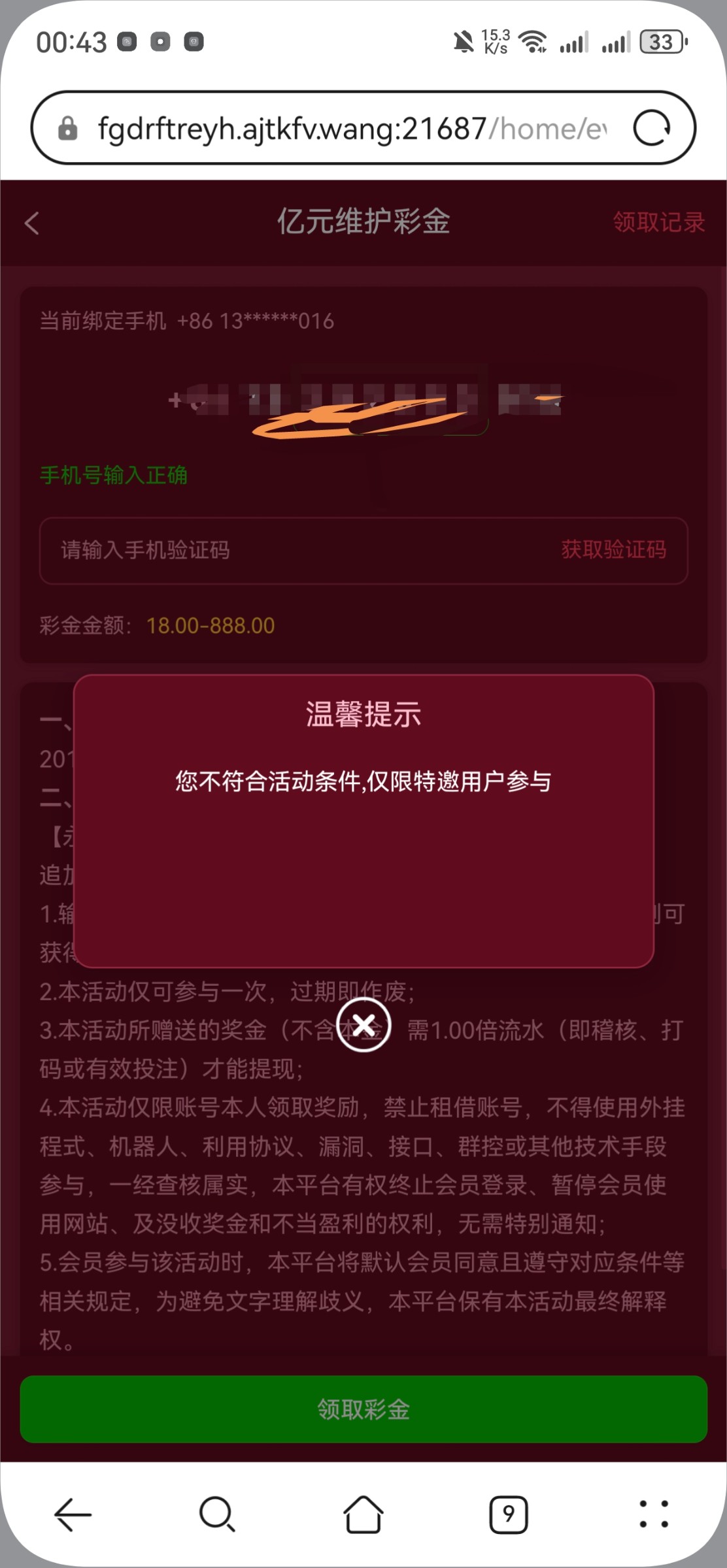 您不符合条件,该通道是特邀用户,才能申请领取