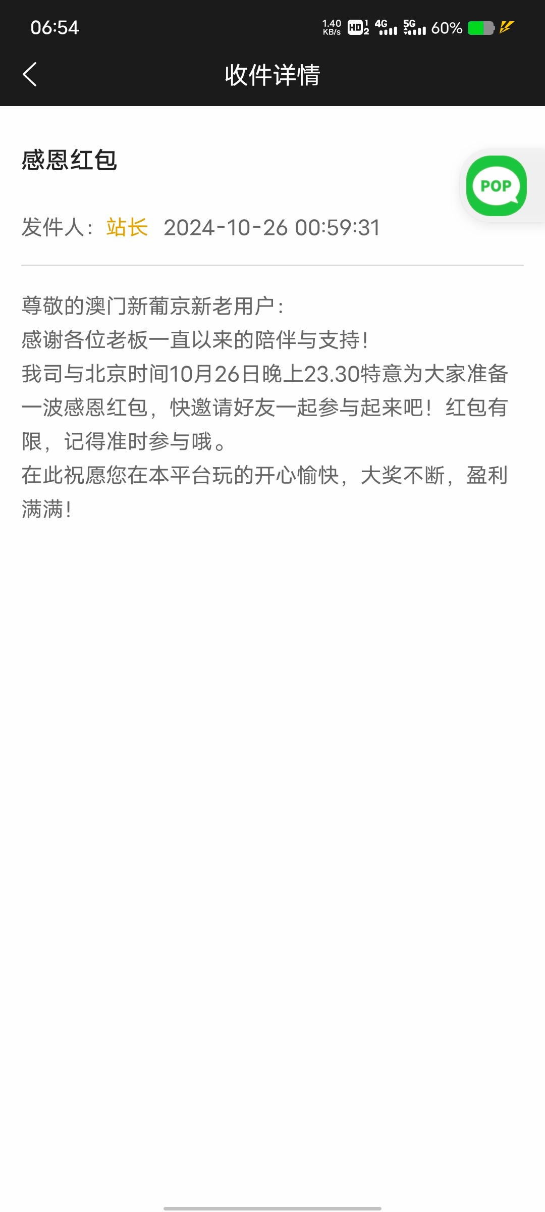 老哥们 662 今天 26 号晚上 23:30 感恩红包别忘了领(狗庄吃撑了感恩我们这些送饭的哎累了)