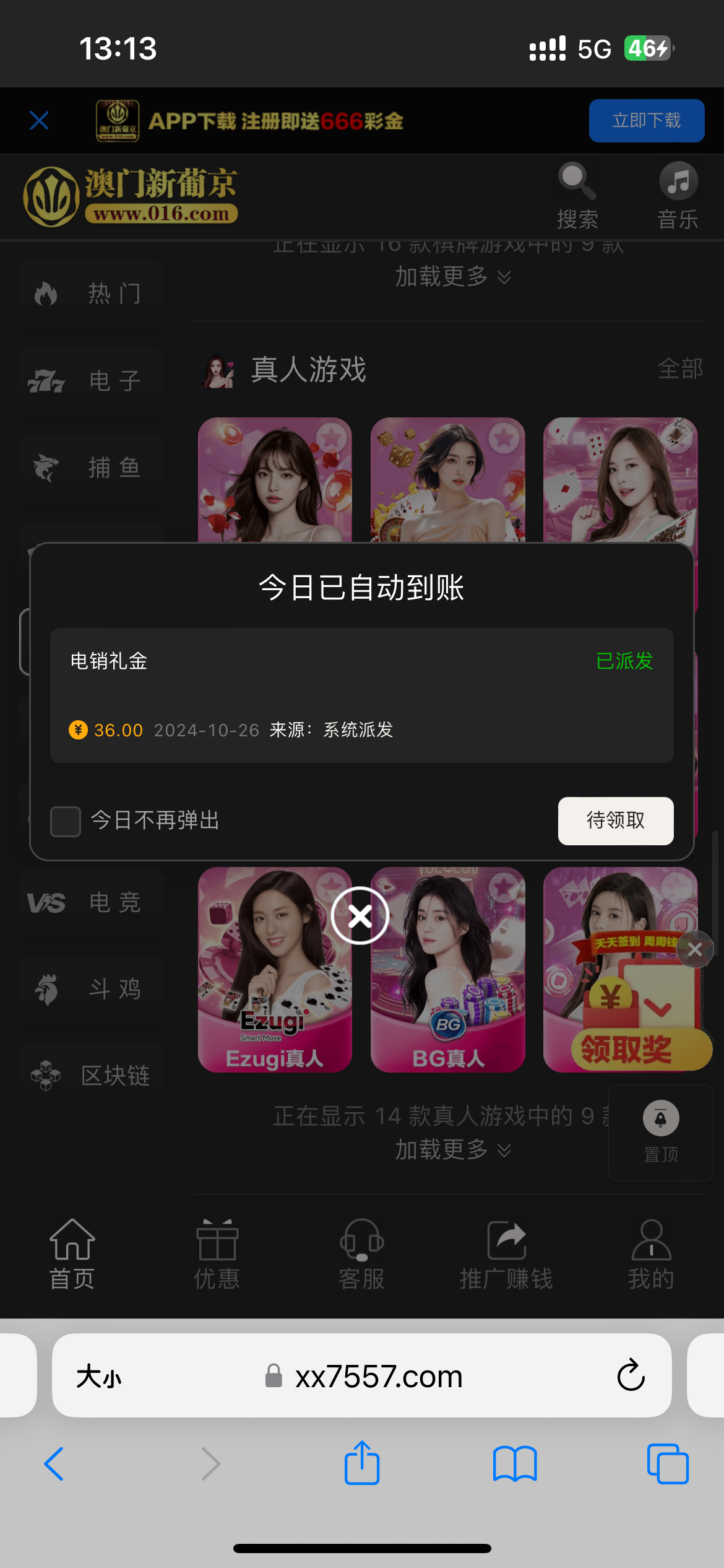 接到电话,登录过几分钟送了36,打到一百没有提,挂壁