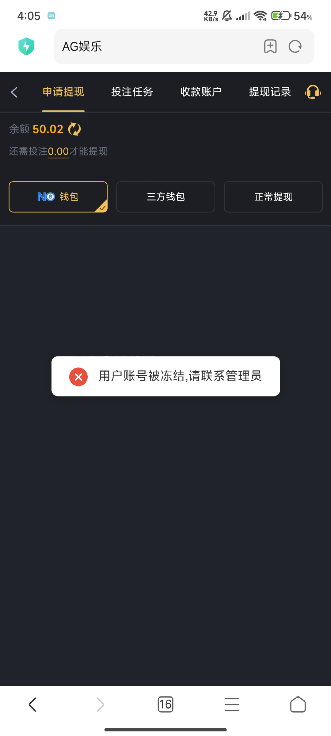 注册领到了,还没玩就冻结了