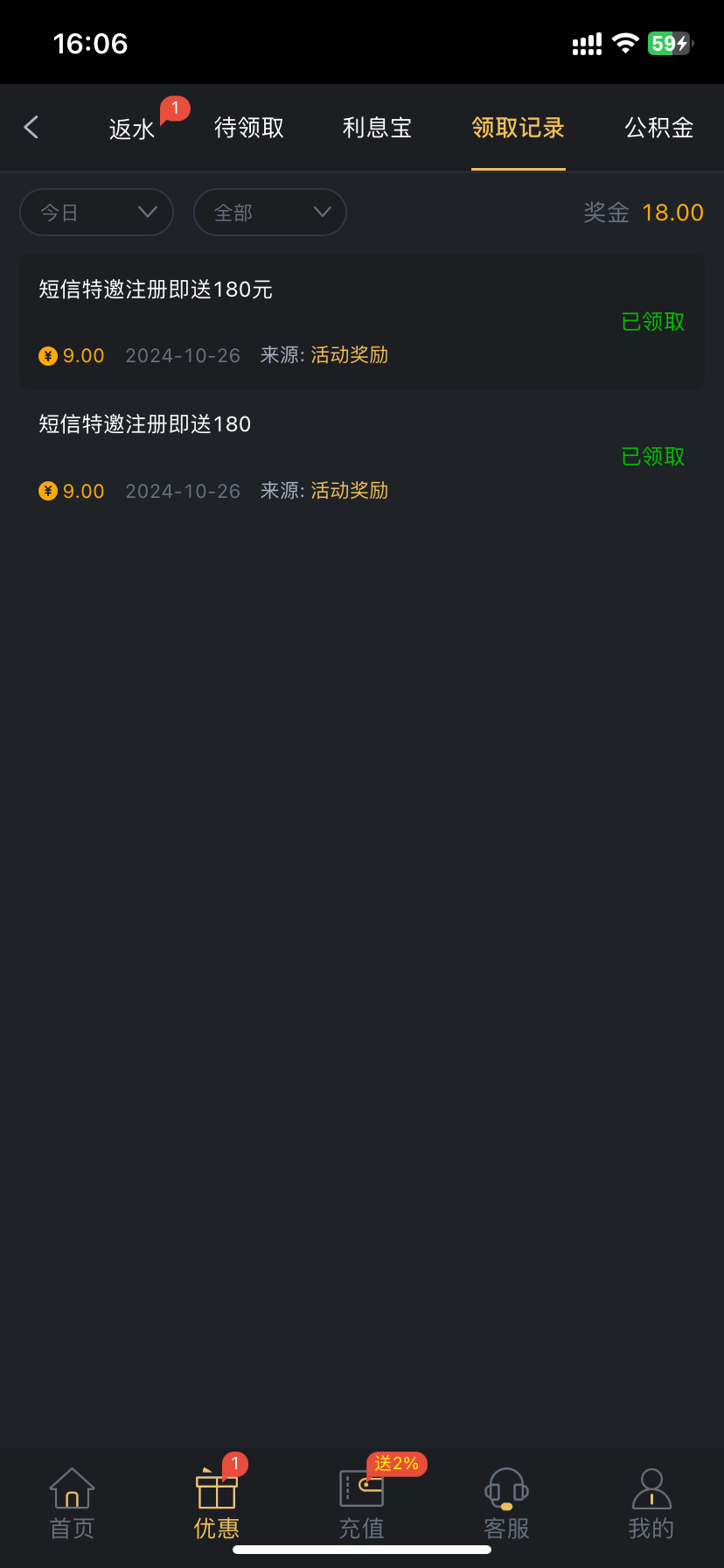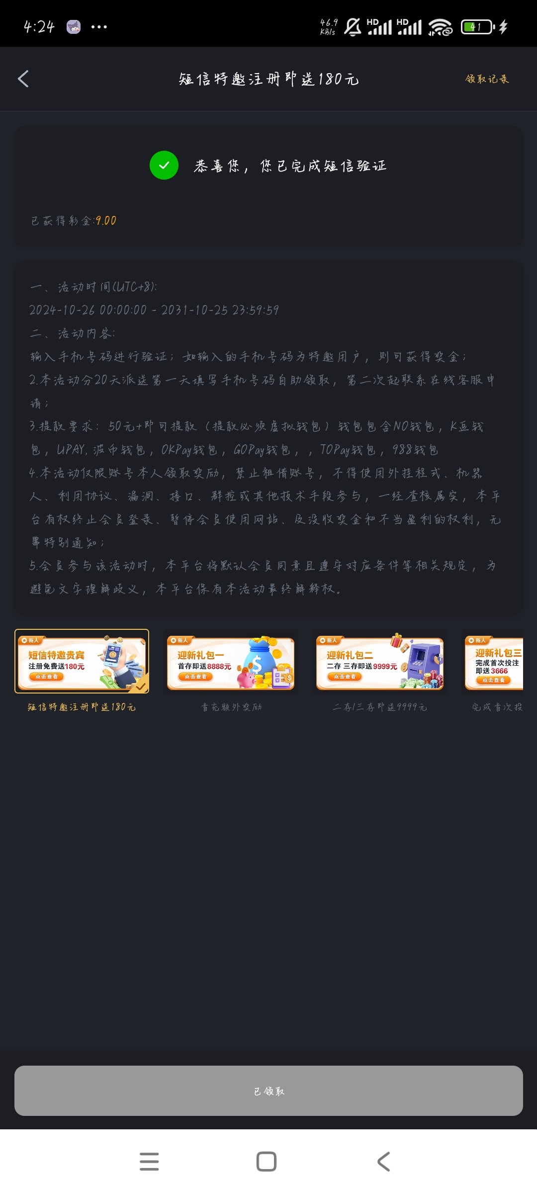 有收到短信,直接删掉了,现在去试试