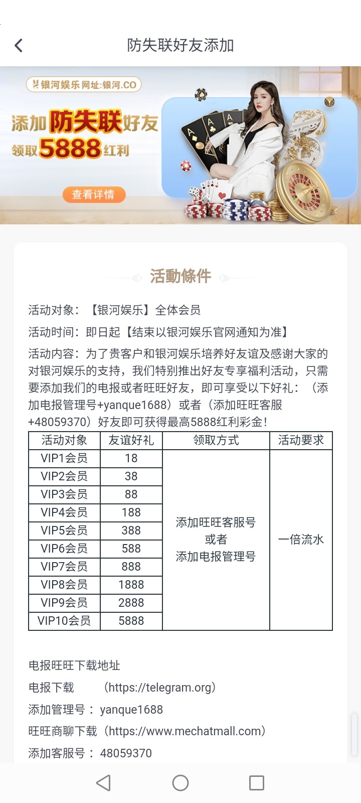 【银河YH168】—✅—防失联彩金