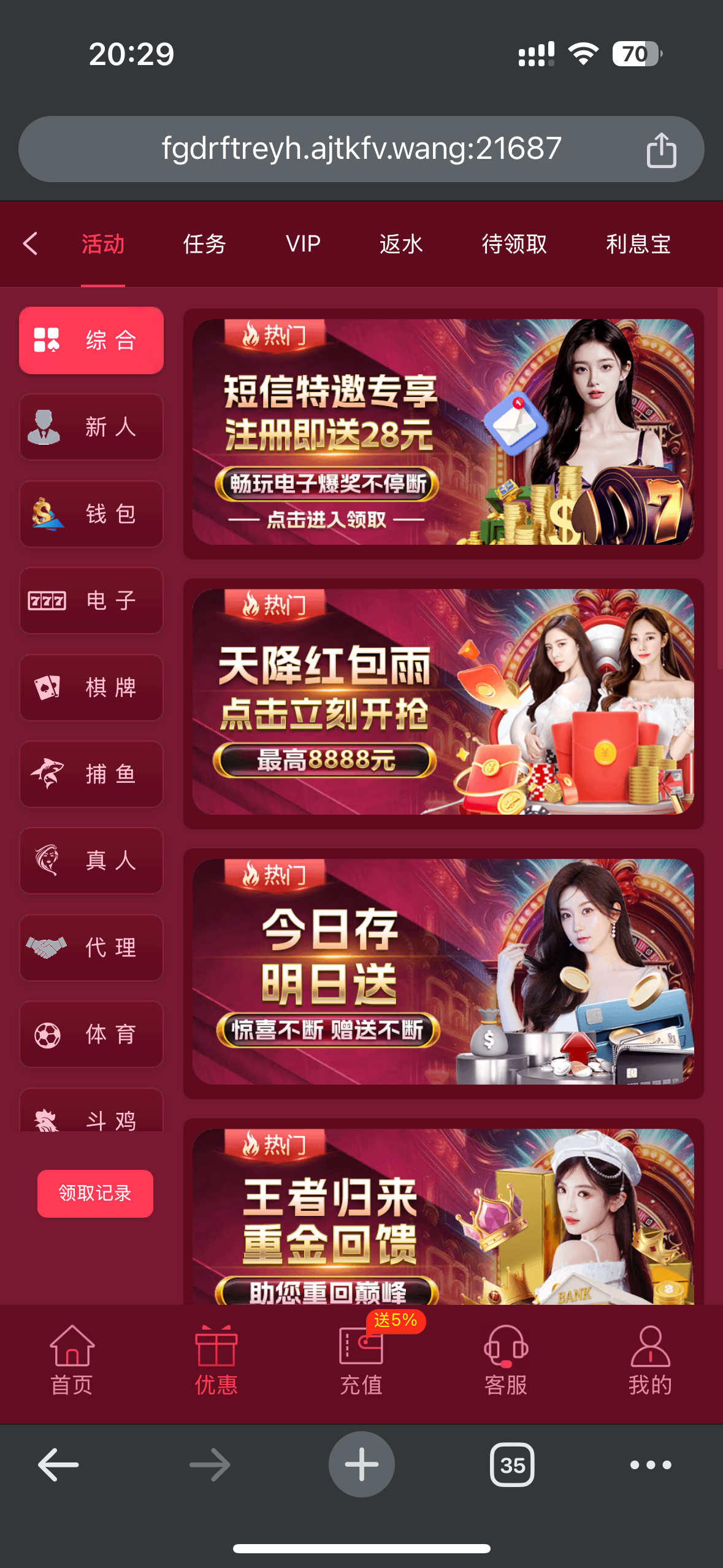 一个号没收到短信也送了,这是短信地址 acadg.bid ,昨天有发过,那个是维护彩金