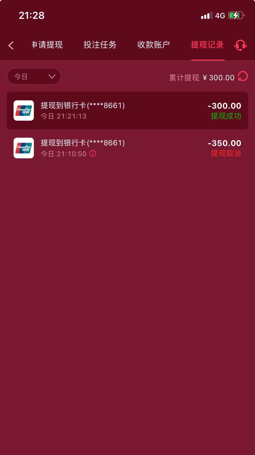 本来活动是最低300,刚才看活动没了就提现了然后真到账了