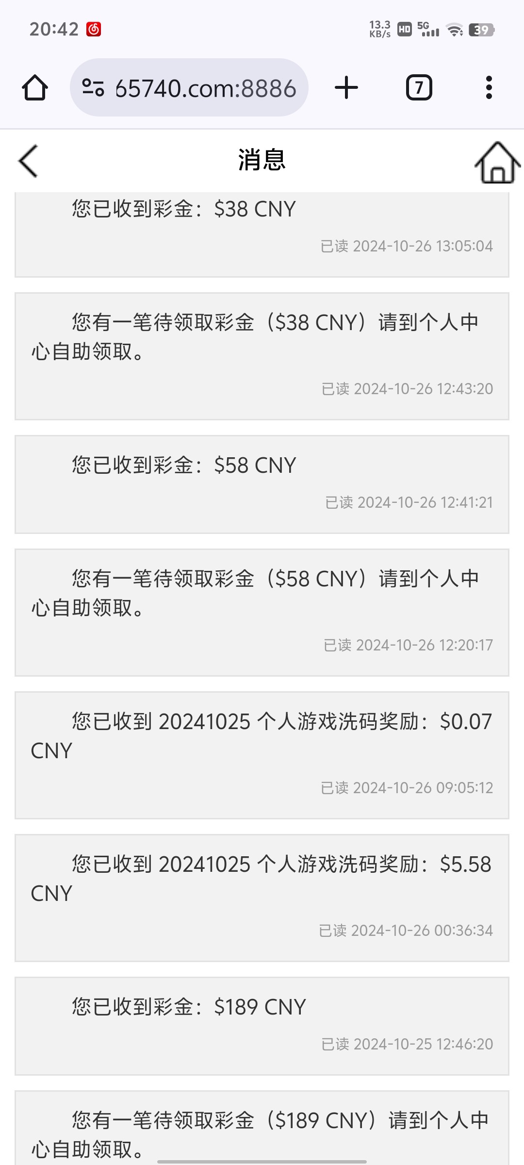 上号一看有两笔 一笔189一笔58 189过期了只领了58 后槽牙咬碎了