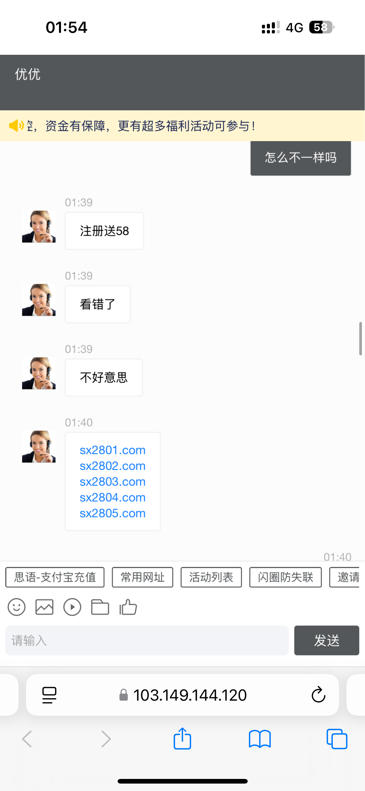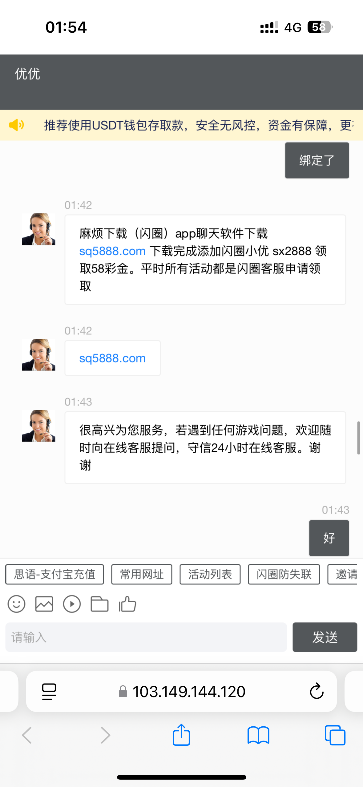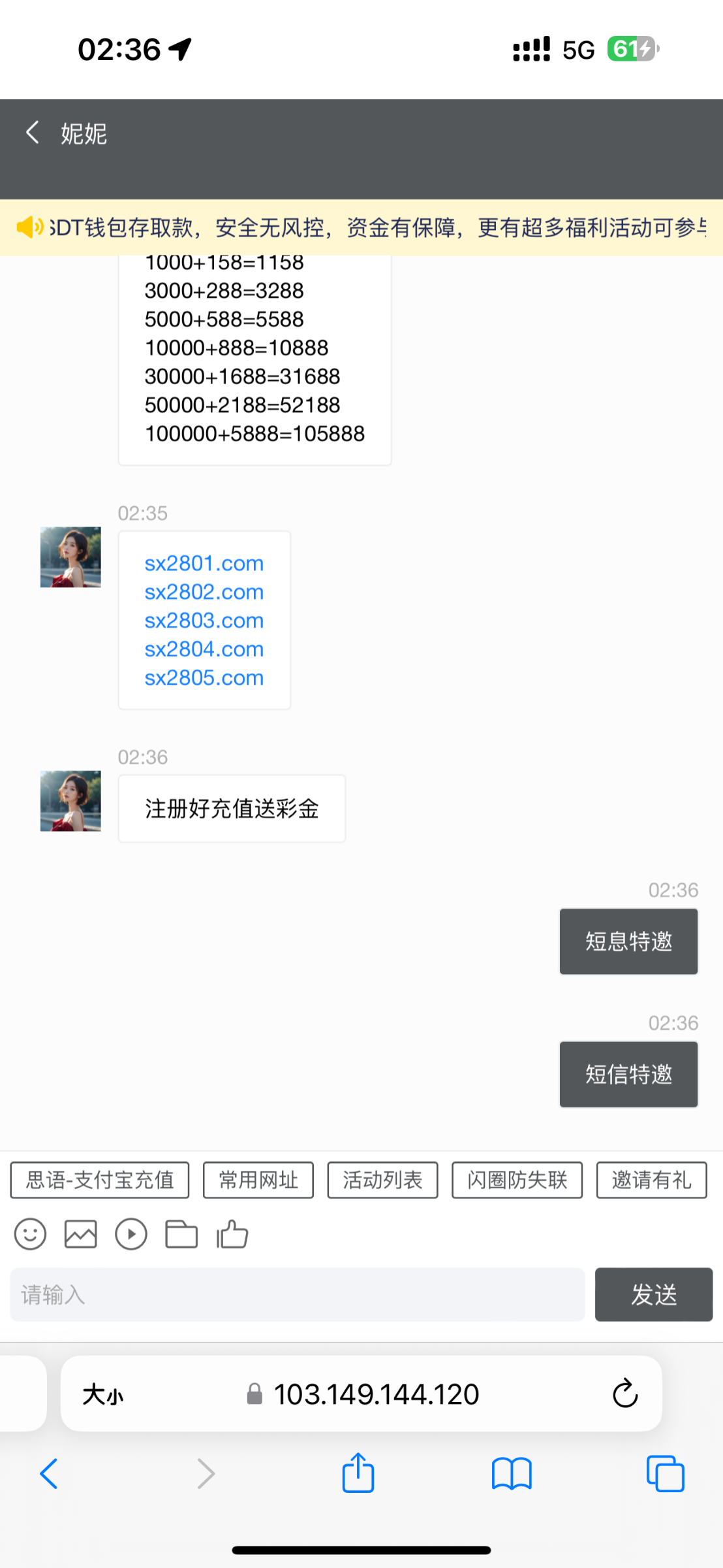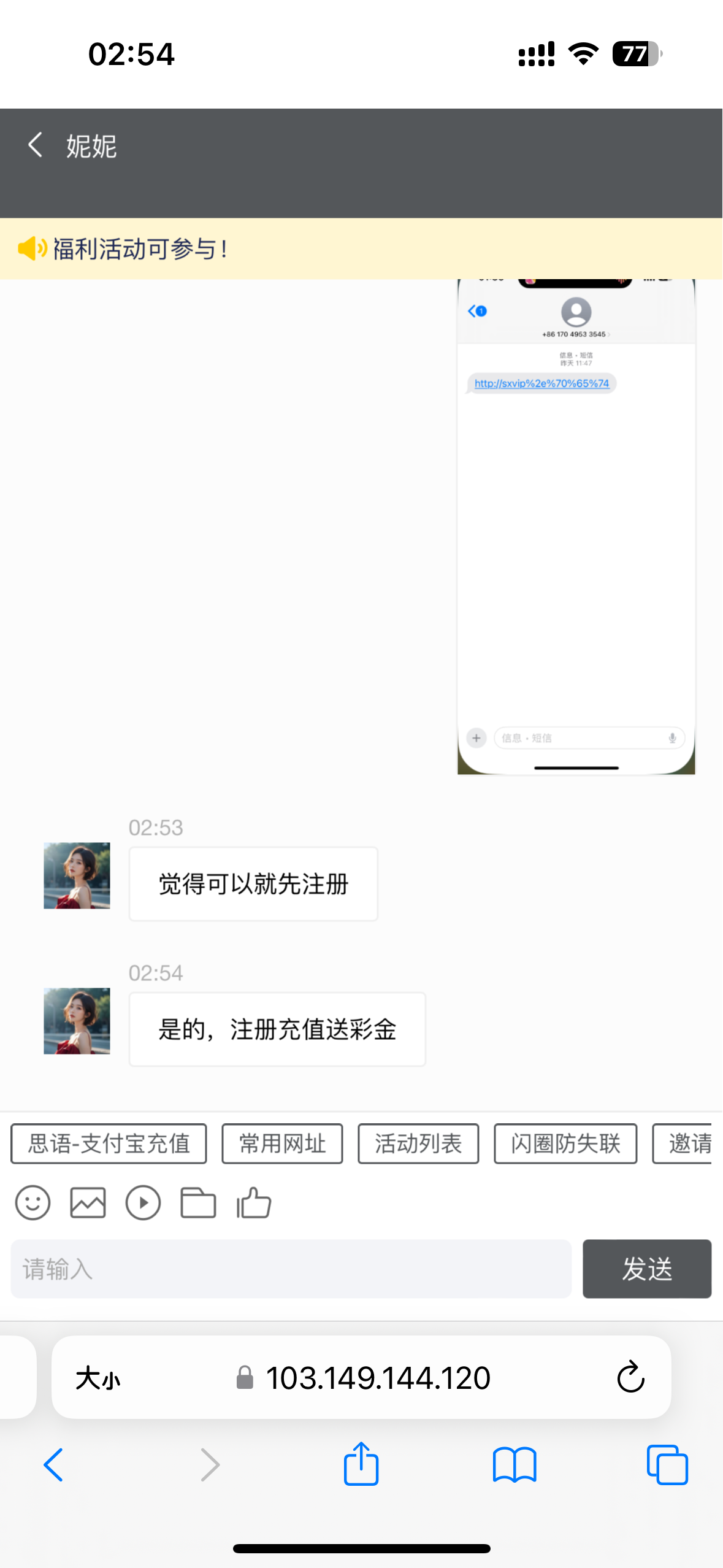 有短信,但是是充值活动