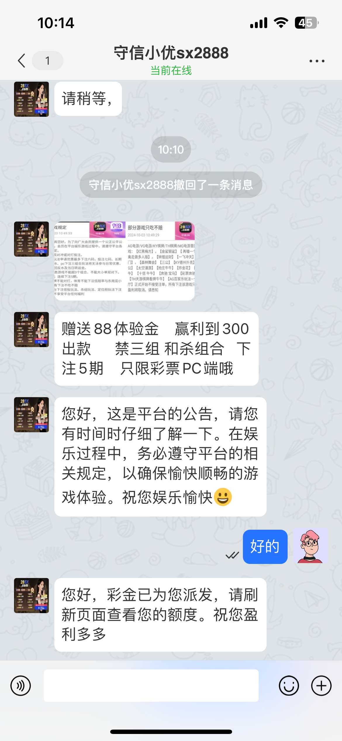 昨天申请不回信息,今天申请秒回,我送的是88