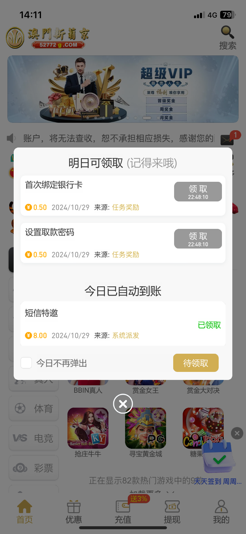 充了一百要第二天才可以领取 打上380 提款取消 罚五倍流水 也是666