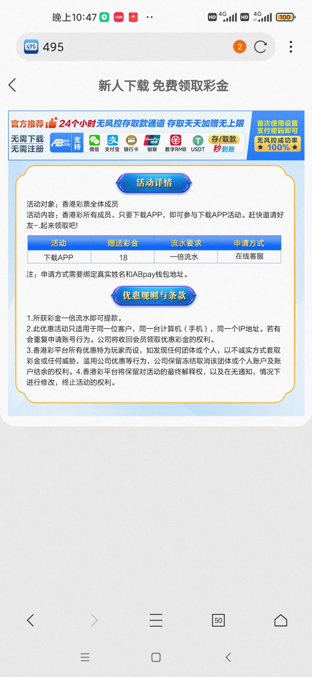 注册下载好APP绑定名和abpay(要二类实名好),找客服领取下载APP彩金,(嘴甜一点,说浏览什么资料什么网站,反正嘴会说就更容易领取)